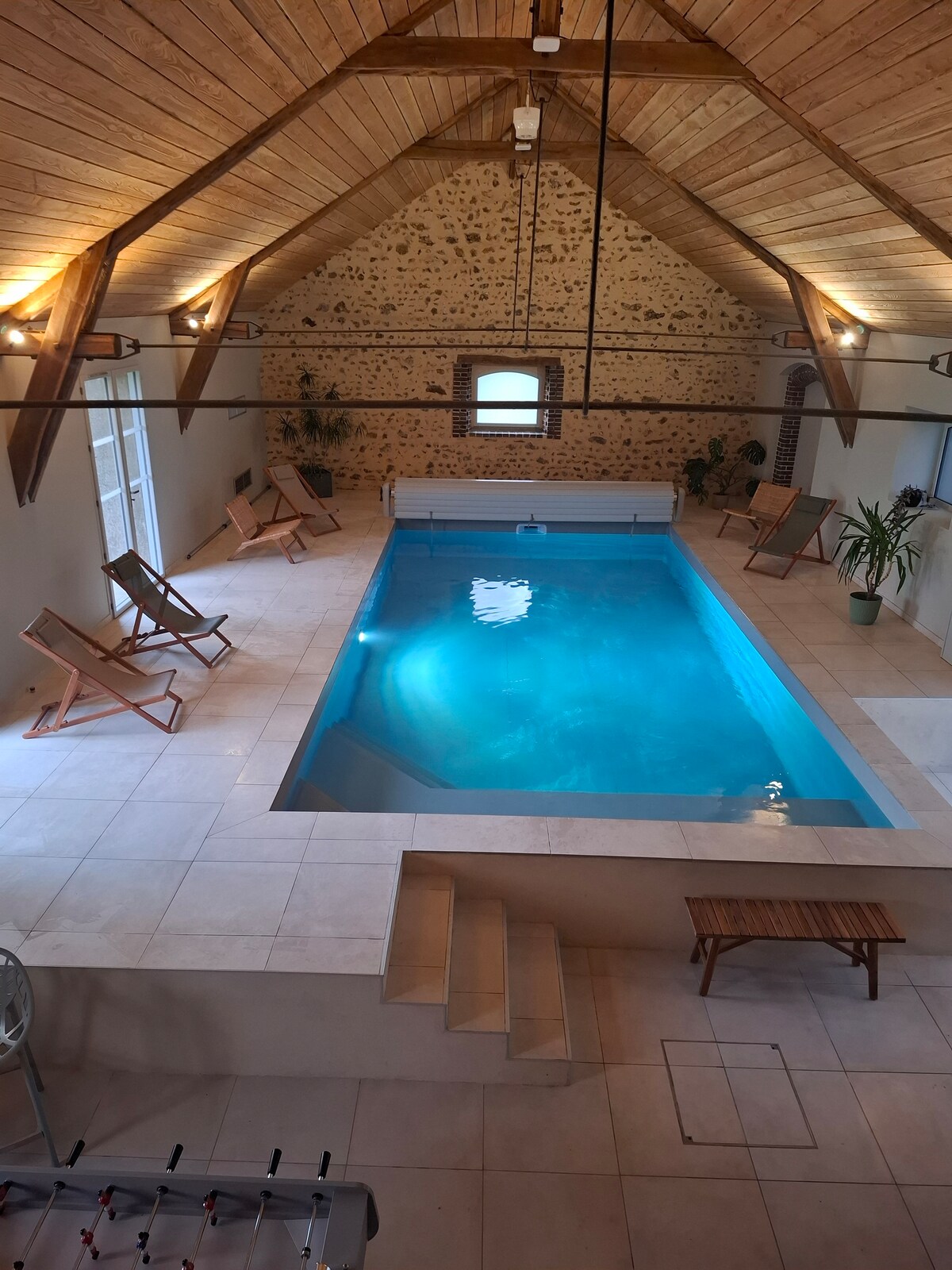 Cette ancienne grange, au sein de notre corps de ferme (dans lequel nous vivons) et au coeur d'un village calme, a été soigneusement transformée en un lieu de vie accueillant, tout en préservant son authenticité L’attraction principale de notre gîte est la piscine intérieure: véritable espace de bien-être, permettant de vous baigner toute l'année Vous recherchez des vacances en famille, un séjour entre amis, notre gîte est l’endroit idéal pour déconnecter et profiter des paysages environnants