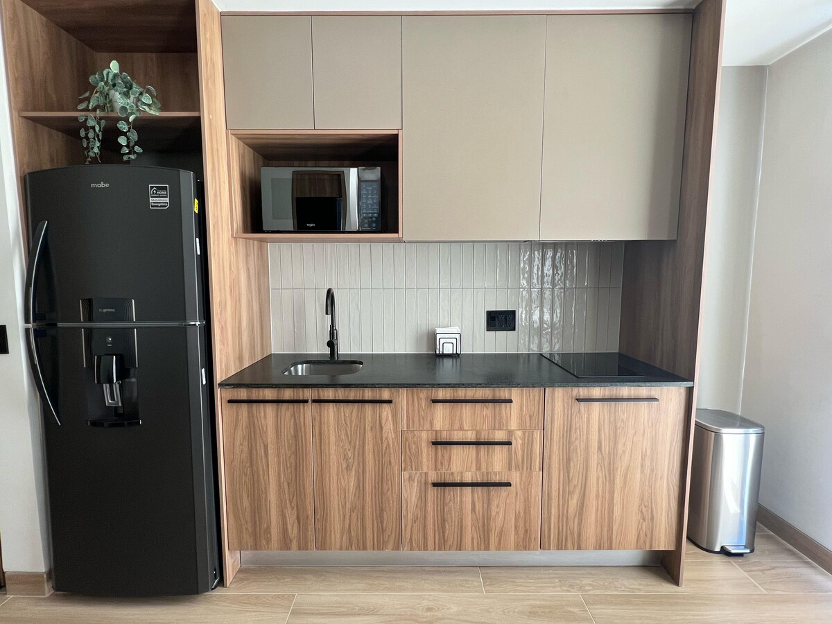 Willkommen in deiner tollen Wohnung! Dieser neue Raum liegt nur ein paar Schritte von der Guadalajara Expo entfernt und ist dank seiner privilegierten Lage und des komfortablen Designs ideal für diejenigen, die an Veranstaltungen, Messen und Kongressen teilnehmen. Genieße ein Apartment mit hochwertigen Oberflächen, hellen Räumen und allen Annehmlichkeiten, die du für einen angenehmen Aufenthalt benötigst. Perfekt für Geschäftsreisende, Aussteller und Expo-Teilnehmer. Nur wenige Schritte von der Expo Guadalajara entfernt!!!