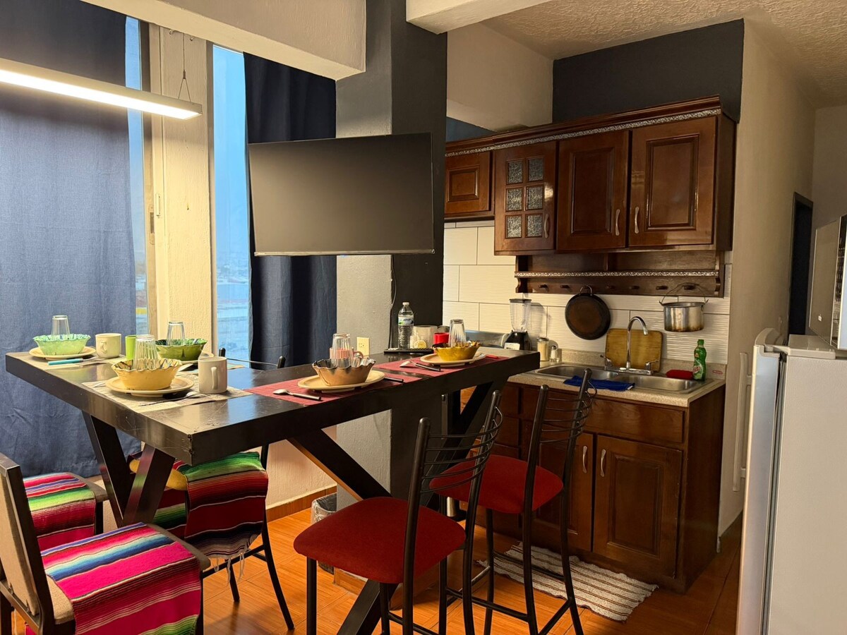 Übernachte in der besten Wohnung der Gegend, Ausgezeichnete Lage, 12 Minuten von ITESO, 15 Minuten von der Expo und Plaza la Perla, nur wenige Schritte von Plätzen, Restaurants, Selbstbedienungsgeschäften, Bahnhof (mit dem Sie sich leicht durch die Stadt bewegen können) entfernt. Neben den wichtigsten Alleen, um sich fortzubewegen. Schöne Aussicht, Fitnessraum, Panoramapool, Terrasse, Grillbereiche. Die beste Wohnung, die du wählen kannst, um deine Tage in Guadalajara zu verbringen. Es wird mir eine Freude sein, Sie zu empfangen💖