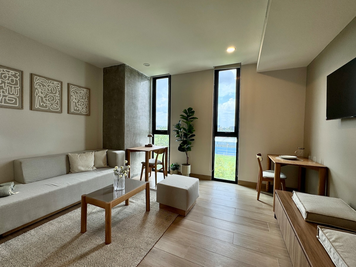 MORADA LIVING Perfecto para amigos, compañeros de trabajo o viajeros que prefieren dormir por separado, este estudio ofrece dos camas individuales, sofá cama, cocina completa, Smart TV y escritorio. Su diseño moderno lo hace práctico y cómodo para estancias cortas o largas. El edificio cuenta con áreas comunes agradables y se encuentra en una ubicación estratégica: cerca del Centro Histórico, Colonia Americana y Parque Agua Azul. Comodidad, flexibilidad y ubicación en un solo lugar.