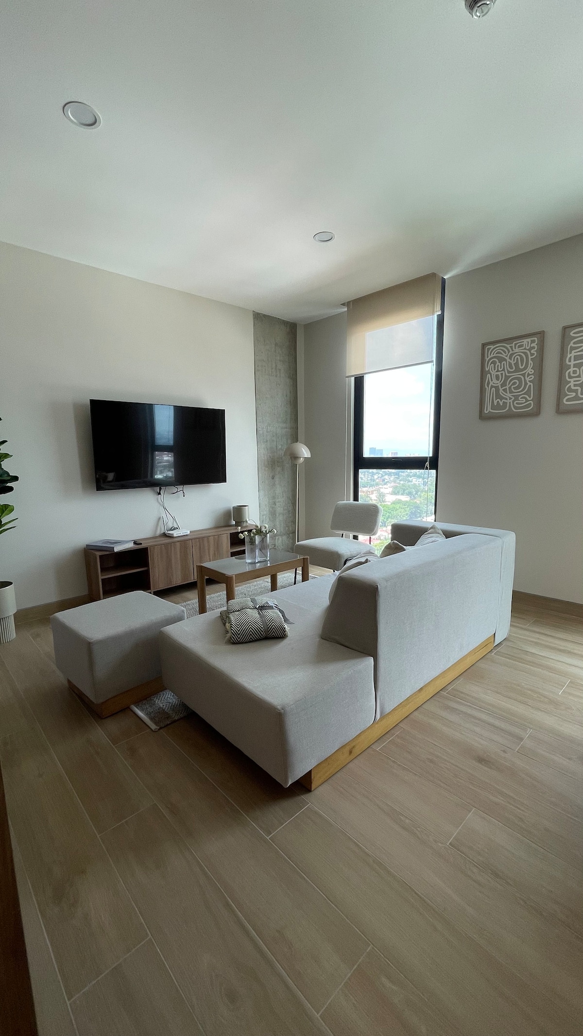 Super Wohnung drei Blocks von Expo Guadalajara! Ausgestattet, geräumig (160 m) und intelligent, sauber und geschmackvoll. Bequeme Betten und Verdunkelungsvorhänge in den Zimmern für eine angenehme und kontinuierliche Erholung. Große Küche mit Frühstücksbar, ausgestattet mit Nespresso-Kaffeemaschine (Kapseln bitte mitbringen), Kaffeemaschine, Toaster, Mikrowelle, Mixer und allem, was du brauchst, um dich wie zu Hause zu fühlen. Eigener Parkplatz vor der Tür. Ausgezeichnete Lage, 5 Minuten von der Plaza del Sol und Zugang zu Schnellstraßen.
