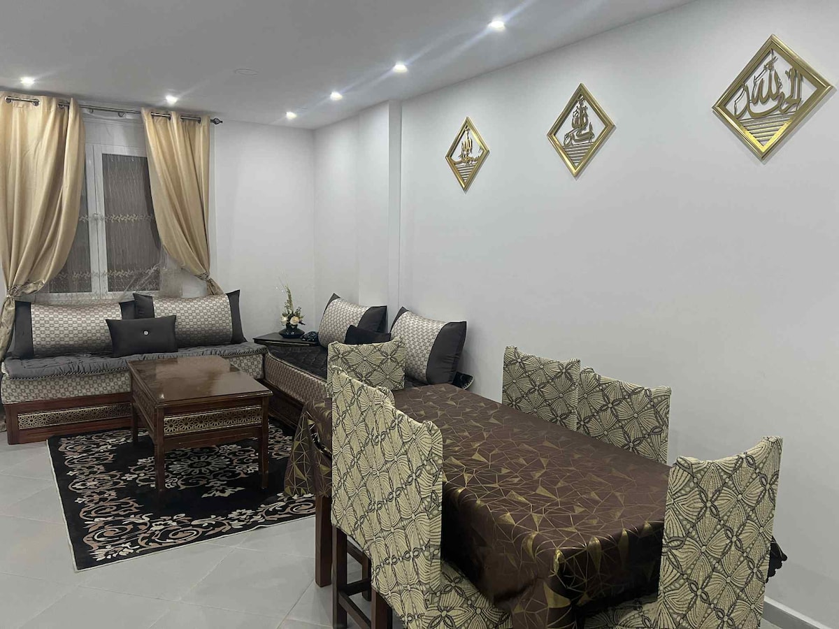 Appartement le "BIEN ETRE" entre aire pure et calme appartement neuf situé au premier étage d'un immeuble dans un quartier résidentiel calme à 10 mn du centre ville et 7 mn du plateau Lalla Setti , les pièces sont spacieuses et baignent de lumière , la cuisine est équipée en vaisselles et frigo,idéale pour faire mijoter de bon plats. l'appartement est dotée d'une salle de bain généreuse en surface