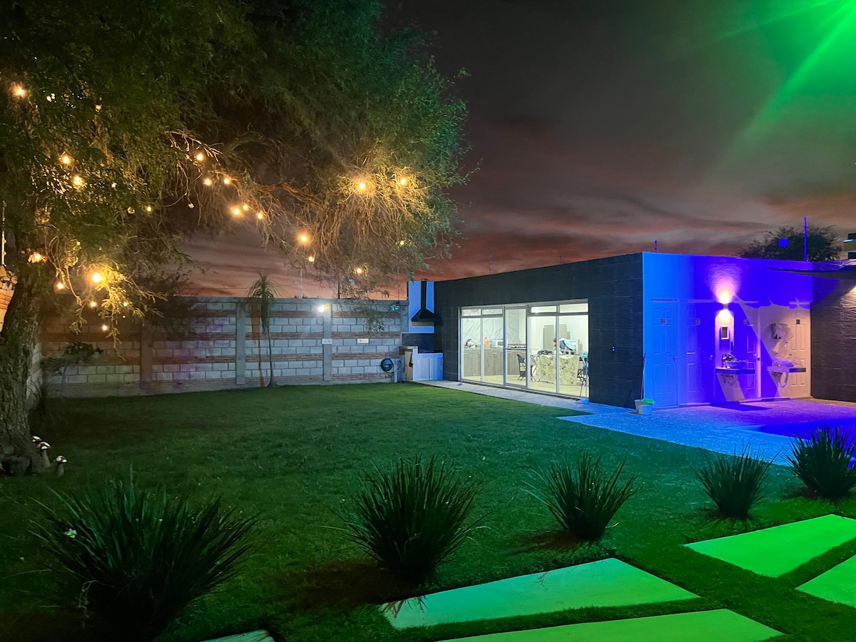 Entspanne dich mit der ganzen Familie in dieser Unterkunft, in der du Ruhe atmen kannst. Im Haus der Tanten wirst du dich völlig entspannt fühlen, umgeben von Pflanzen, Blumen mit Blick auf den Golfplatz und einen Teil des Teiches, wo du die Enten sehen kannst. Die Ruhe, die den Ort umgibt, ist von unschätzbarem Wert. Du kannst den Pool genießen und Fleisch auf der Terrasse grillen. Der mexikanische Kolonialstil wird dich an einem komfortablen Ort fühlen lassen.