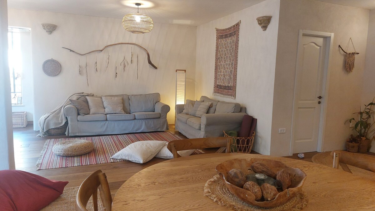 Entspannen Sie sich mit der ganzen Familie in der ruhigen und magischen Unterkunft, Standard und geräumig Mamad, Ein geräumiges und charmantes Haus, gestaltet und mit einer echten ländlichen Atmosphäre ausgestattet. Der letzte im Dorf, begrenzt von dem spektakulären Blick auf die Berge Jerusalems auf der einen Seite und das gesamte Küsteltiefland auf der anderen Seite. Gute und saubere Luft, endlose Ruhe, eine halbe Stunde vom Zentrum von Jerusalem und vom Zentrum von Tel Aviv entfernt. 3 geräumige Schlafzimmer Eines davon ist ein standardmäßiges, großes und geräumiges Mamad. 2 Duschräume, eines mit einer großen Badewanne, ein weiteres Gäste-WC. Ausreichend Parkplätze. Großer Balkon mit einem Esstisch im Freien und im Innenbereich. Ein riesiger Fernseher für alle, die Günstige Ecken Feuerstelle Und alles, was man sich für einen Landurlaub wünschen kann