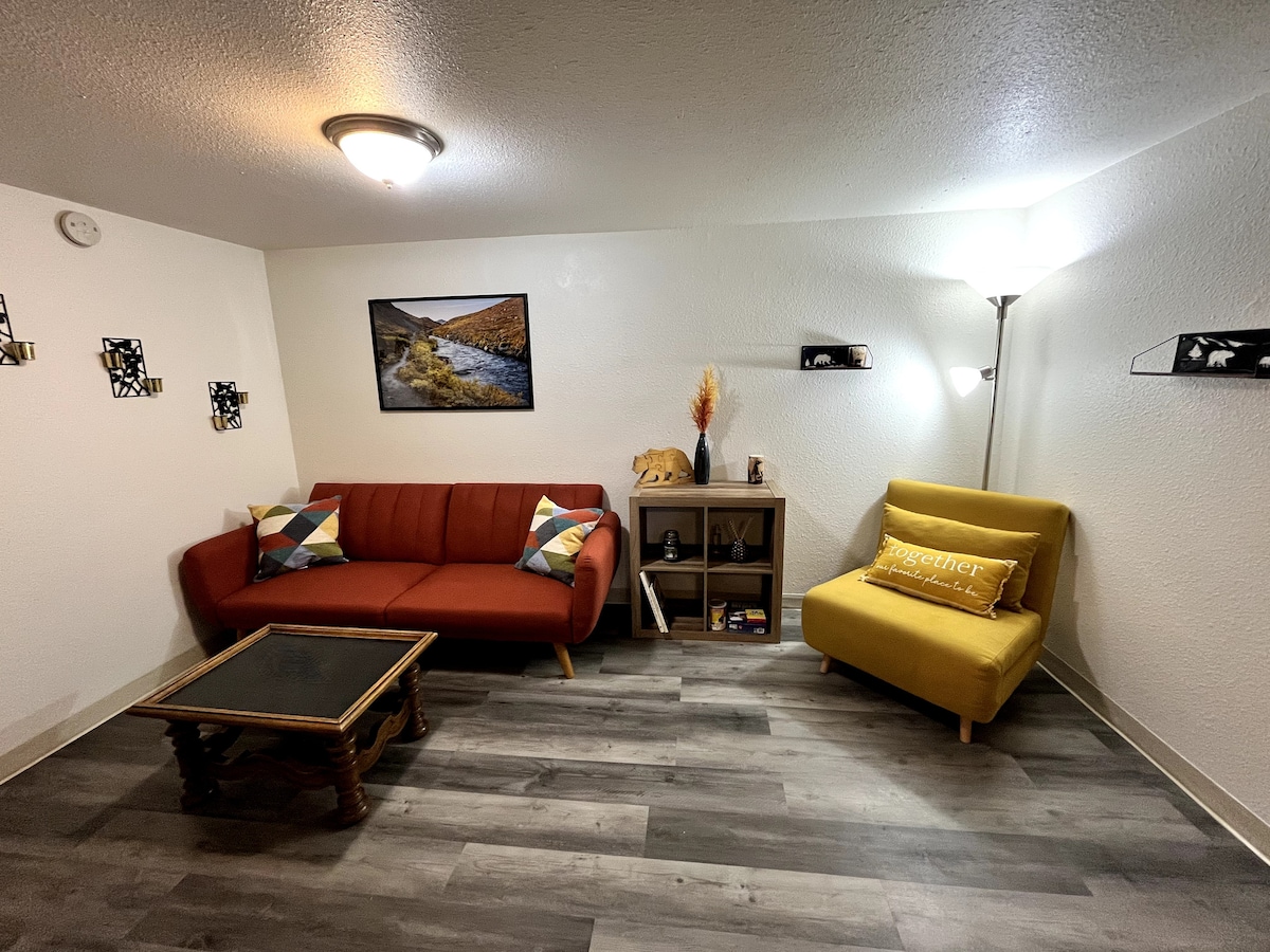 Willkommen in der Alaskan Bliss Corner! Dein zweites Zuhause in Fairbanks. Dieser charmante Rückzugsort mit 2 Schlafzimmern bietet Platz für bis zu 5 Gäste und bietet die perfekte Mischung aus Komfort, Bequemlichkeit und gemütlichem Charme. Egal, ob du geschäftlich, Abenteuer oder einen frischen Tapetenwechsel zu Besuch bist, hier findest du alles, was du brauchst, von einer voll ausgestatteten Küche bis hin zu einem entspannenden Wohnbereich mit modernen Akzenten. Durchdacht für längere Aufenthalte und stressfreie Aufenthalte!