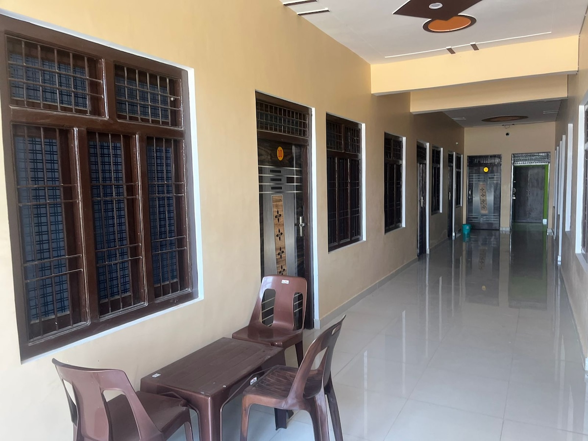 (50 m von Ram Mandir entfernt) Treten Sie ein in ein friedliches, wohnliches Refugium, nur wenige Augenblicke von Ayodhyas heiligem Ram Mandir entfernt. Unsere geräumigen Zimmer bieten eine perfekte Mischung aus Komfort und Ruhe, umgeben von üppigem Grün für eine erfrischende Auszeit. Genieße viel Platz zum Trocknen von Kleidung und eine ruhige Atmosphäre. Kanak Bhawan, Hanuman Garhi, Naya Ghat und alle Tempel befinden sich in einem Umkreis von 2 km. Geh zum Bahnhof, zum Krankenhaus, zum Geldautomaten und zu den Geschäften für den täglichen Bedarf – erlebe den spirituellen Charme von Ayodhya mit größter Bequemlichkeit.