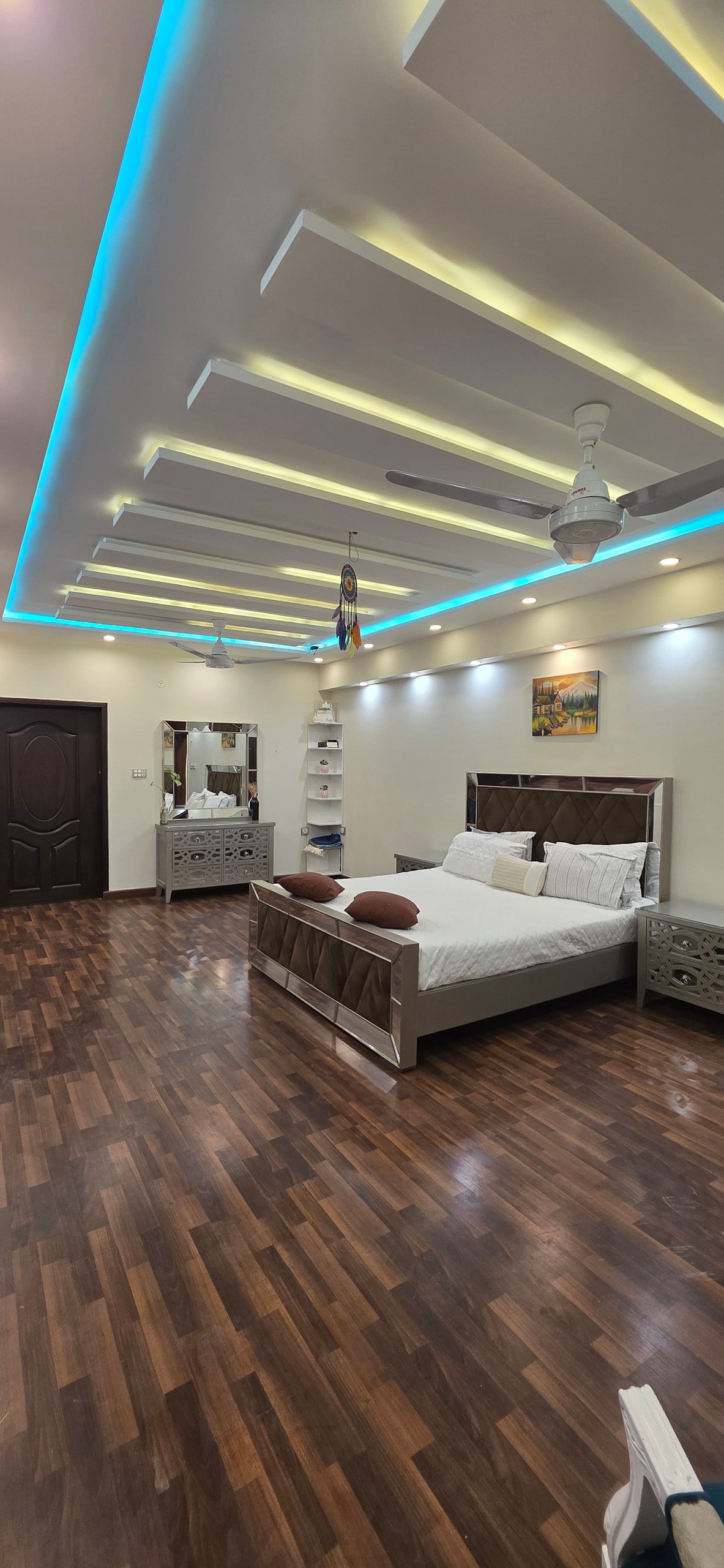 Our 1 BHK Orbit Penthouse in DHA Phase 5 is where urban chic meets celestial cool. Think: a glowing moon wall for those late-night selfies and a bold dollar-stacked art piece that screams "main character energy" Wake up to park views from your private balcony swing, binge your faves on the 50" 4K Smart TV, or cook up something aesthetic in the fully loaded designer kitchen. The interiors? Abstract, stylish, and made for the feed. Plus, you're right next to Lahore's hottest dining spots.
