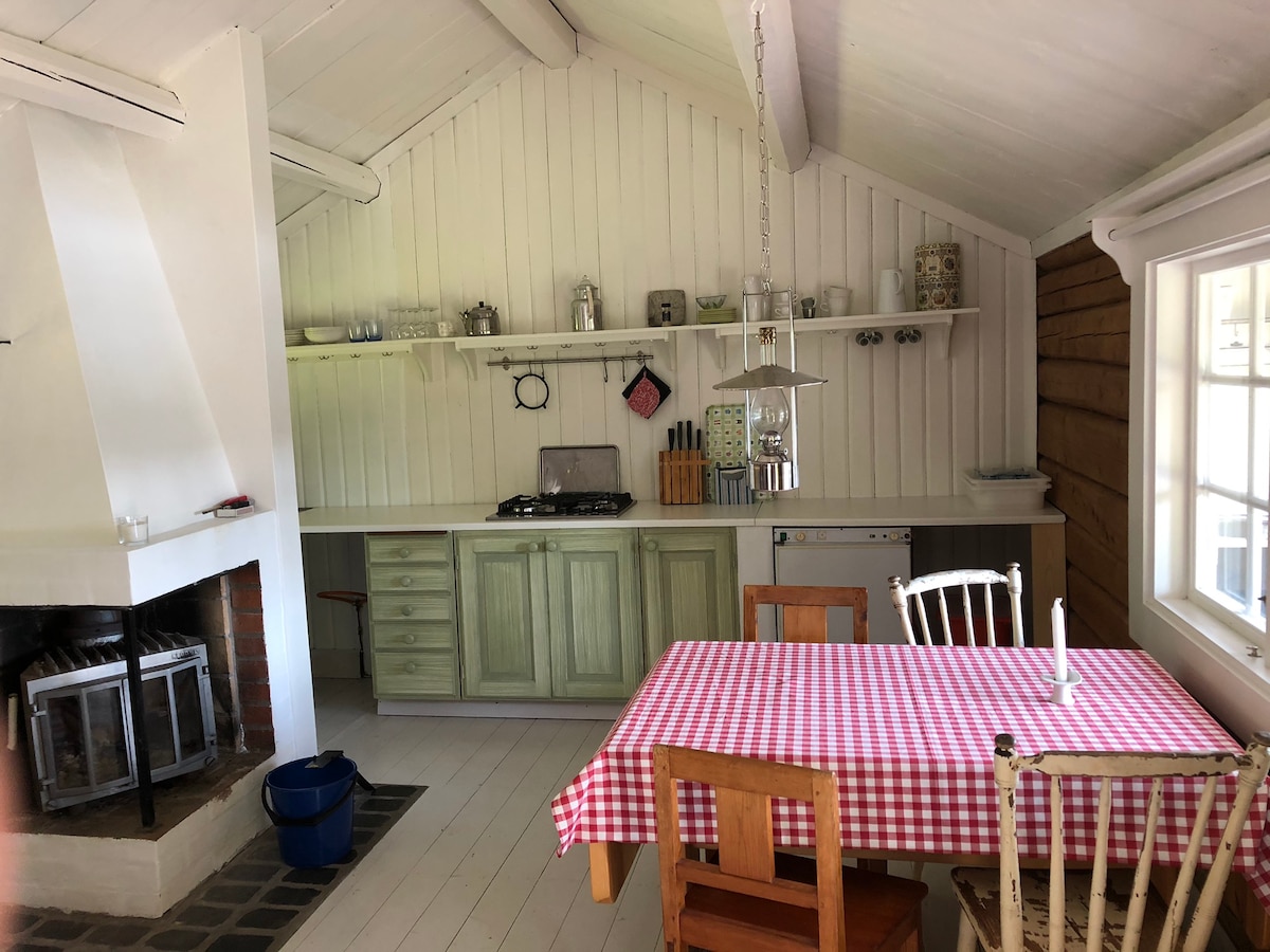 En typisk lillerstuga intill det större huset på en äldre bondgård. Inredningen är typisk åttitalsrenovering med mycket furu, men allt du behöver för några lugna semester dagar finns. Detta boende passar den som vill ta det lugnt och har andra prioriteringar än lyxig komfort. Dagarna spenderas kanske i skog o natur, eller med kanoten som finns tillgänglig i sjön. Väl hemma kanske tänder i vedspisen och låter tankarna över dagens händelser vandra.