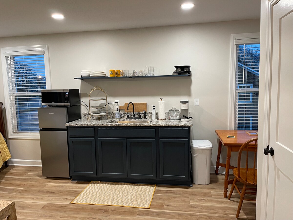 Entspann dich in dieser besonderen und ruhigen Unterkunft. Neubau-Barndominium, versteckt in einer waldreichen Umgebung auf 3 Seiten. Beobachte die Tierwelt, während du frühstückst. Das Hotel liegt etwas außerhalb der Stadt und in der Nähe aller lokalen Annehmlichkeiten. Verfügt über ein neues geräumiges Kingsize-Bett, eine voll ausgestattete Küche mit Kochgeschirr und einen großen 50-Zoll-Fernseher mit WLAN. Gas-Holzofen für kühle Nächte und zusätzliches Ambiente. Verfügt über eine Gasfeuerstelle im Freien, sodass du in den Schaukelstühlen sitzen und die Glühwürmchen im Sommer beobachten kannst.