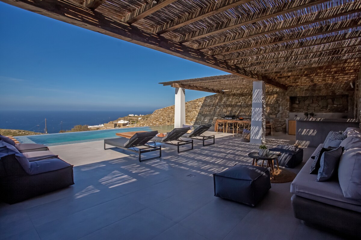 Entfliehe in die Villa Fos, nur einen Steinwurf von der Stadt Mykonos entfernt. Unsere Villa mit 3 Schlafzimmern, 3 Badezimmern und einem privaten Pool ist ideal für bis zu 8 Gäste. Das Erdgeschoss verfügt über einen Wohnbereich, ein Schlafzimmer und ein Badezimmer. Im Obergeschoss befinden sich 2 Schlafzimmer, darunter ein Hauptschlafzimmer mit eigenem Bad und einem atemberaubenden Balkon mit Meerblick. Die Villa verfügt außerdem über eine Außenterrasse für Mahlzeiten im Freien. Egal, ob du dich am Pool entspannst oder die Insel erkundest, unsere Villa ist der perfekte Ausgangspunkt für deine Reise nach Mykonos.