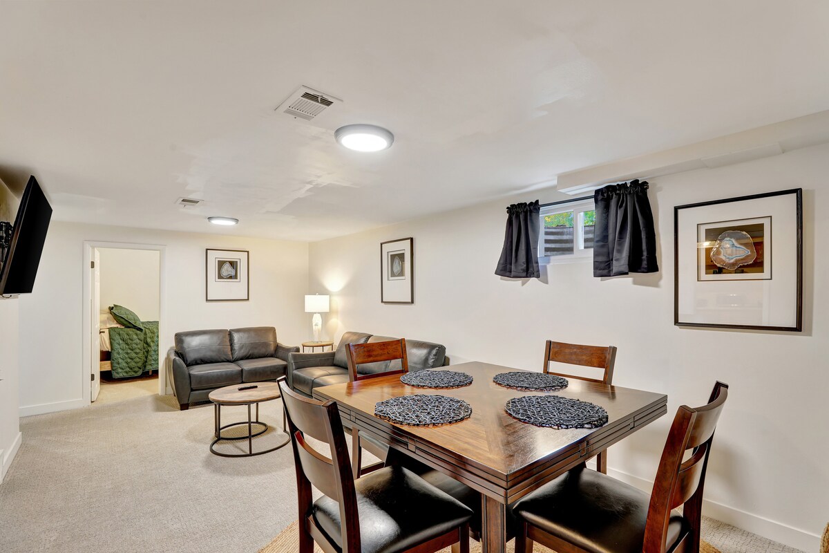 The perfect space to put you in striking distance to downtown Denver, Boulder, & Red Rocks! A newly updated 2 bed & full bath *private* lower-level guest suite with all of the creature comforts of home. Featuring a fully stocked coffee bar to get you up & going in the morning, an updated & sparkling bathroom to rejuvenate after the days activities, a big smart TV to unwind & watch your favorite shows, and comfortable beds with plenty of extra clean sheets & pillows.