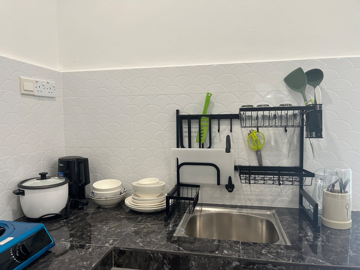 2 Autominuten von der Great Eastern Mall entfernt 1 Minute zu Fuß zur Bushaltestelle 5 Autominuten vom Ampang Park LRT entfernt 8 Autominuten von den Zwillingstürmen von KLCC entfernt 2 Autominuten vom Ampang Point entfernt 2 Gehminuten zum Ampang Grocers. Unsere Unterkunft ist in der Nähe von Nachtleben, öffentlichen Verkehrsmitteln, dem Stadtzentrum, Parks, schönen Lebensmittelbereichen, Einkaufszentren wie KLCC und Pavillon. Du wirst es lieben wegen des Platzes im Freien, der Nachbarschaft, dem bequemen Bett und der Küche. Meine Unterkunft eignet sich gut für Paare, Solo-Abenteurer und Geschäftsreisende.