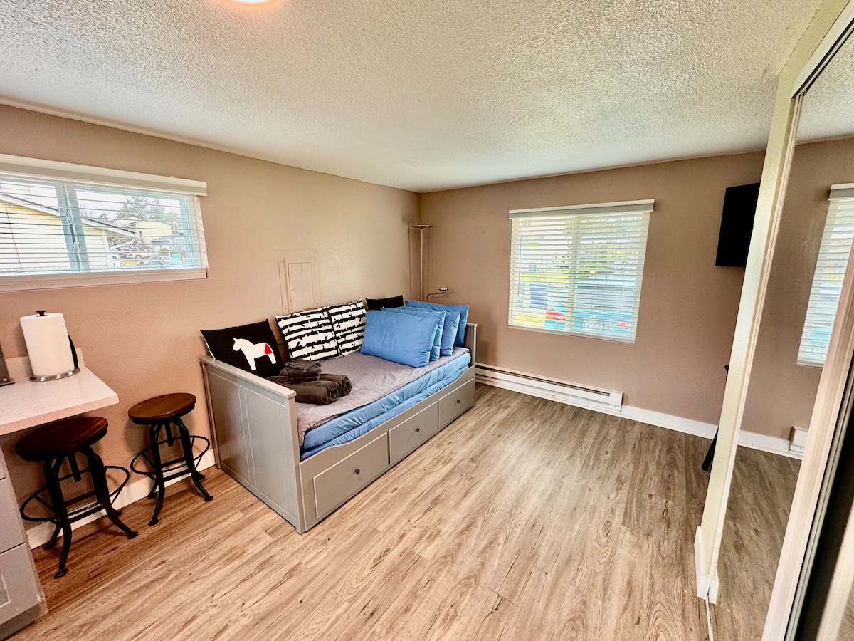 Die gemütliche, 32,5 Quadratmeter große, angebaute Schwiegermutter-Suite befindet sich in einer schönen Wohngegend in der Nähe der Innenstadt von Puyallup. Die Suite verfügt über einen separaten Eingang. Queensize-Bett im Schlafzimmer, das Sofa kann als zusätzlicher Schlafplatz für einen kleinen Erwachsenen oder ein Kind genutzt werden. Zusätzliche Decke/Kissen vorhanden. Günstig in der Innenstadt gelegen und nur wenige Minuten vom Krankenhaus und Messegelände entfernt. Perfekte Ausgangslage mit einfachem Zugang zur Autobahn für Tagesausflüge nach Olympia, Seattle/Tacoma, Mt. Rainier und Puget Sound.