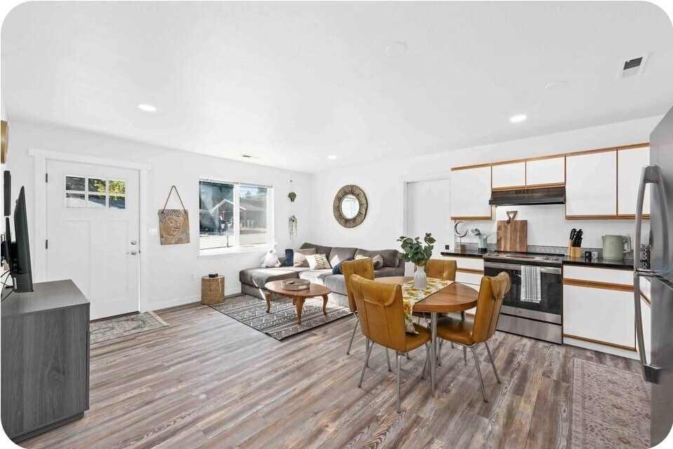 Stop looking and make a great choice by staying at Parkside Place, a fully remodeled 3 bedroom home with modern decor, and every amenity you'll ever need for the perfect getaway. It's the latest listing by FunToStayCDA, owned by an established superhost and local (please click on my profile pic to see other great listings.) This eclectic home sleeps up to ten, featuring a 10 seater cloud couch, ample kitchen, formal dining area, outdoor seating, and an oversized city lot with parking incl RV's