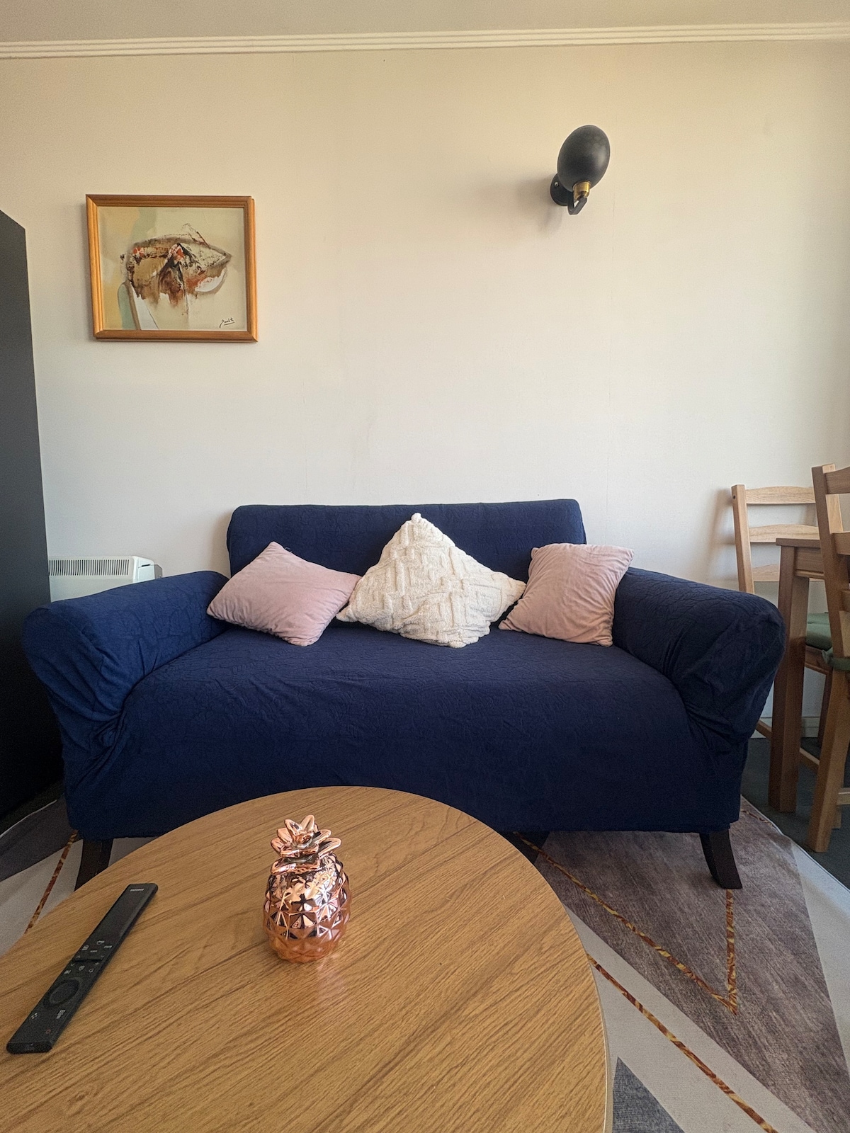 Departamento céntrico y cómodo en segundo piso, ideal para estadías urbanas. Cuenta con 2 dormitorios, sala de estar, 1 baño completo y cocina amoblada con repostería y encimera. Techos altos que brindan amplitud y buena iluminación. Una habitación tiene balcón con vista a la calle. Dispone de terraza con sol y sombra, además de lavandería. Ubicación central, práctica y funcional para moverse por la ciudad.