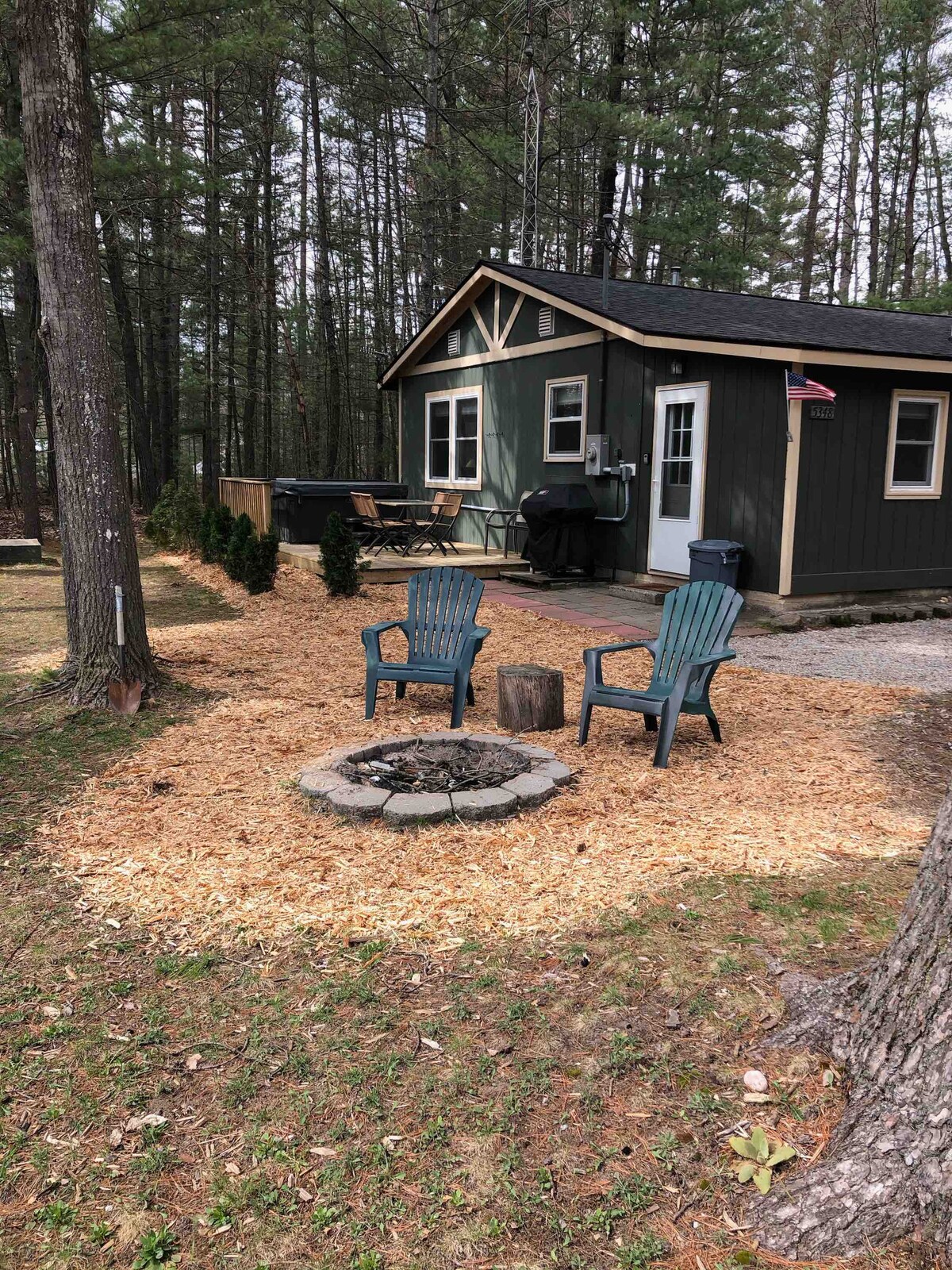Enjoy the coziness of a bygone era while staying in this 1940s quaint, storybook log cabin. The Hawks Nest has been lovingly restored to its original glory while having all the modern-day amenities woven through its clean 380 sq. ft. space. Retreat to the spacious covered porch to relax and view the acre-and-half property leading down to 100ft of 6Mile Lake frontage. Star gaze while relaxing in the comfortable, Amish-built gilding chairs around the spacious, paver fire pit area .