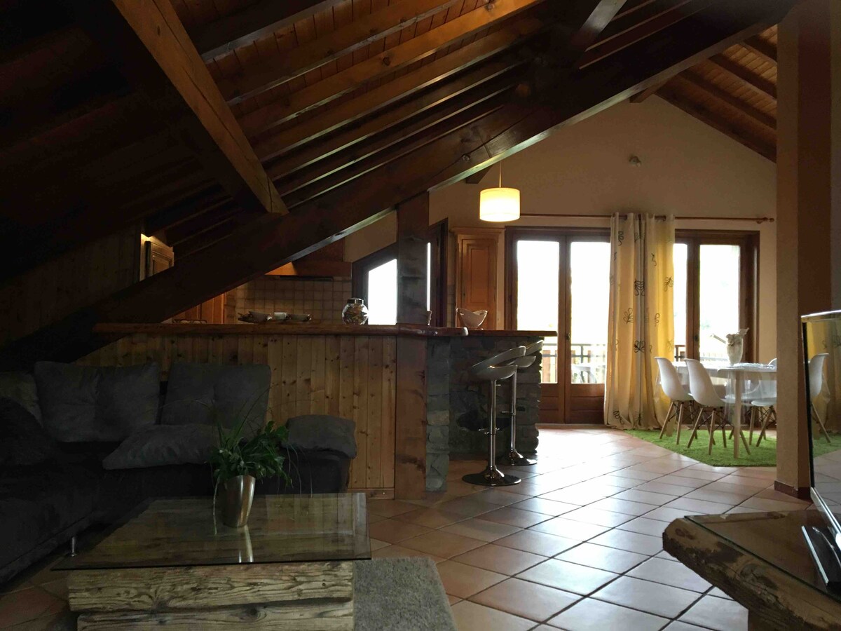 Eine halbe Stunde von Genf entfernt, im Weiler SEVRAZ auf 850 m Höhe, haben Sie eine herrliche Aussicht. Gemütliche Atmosphäre, Terrasse und Garten zum Ausruhen, es wird Ihr kleines Refugium für schöne Abenteuer in unseren Seen und Bergen sein, die direkt in der Nähe sind. 15 Minuten entfernt ist das Massif des Brasses, ein Familienresort, der perfekte Ort, um Skifahren zu lernen oder im Sommer zu wandern und die Freuden der Berge mit Leichtigkeit zu genießen.