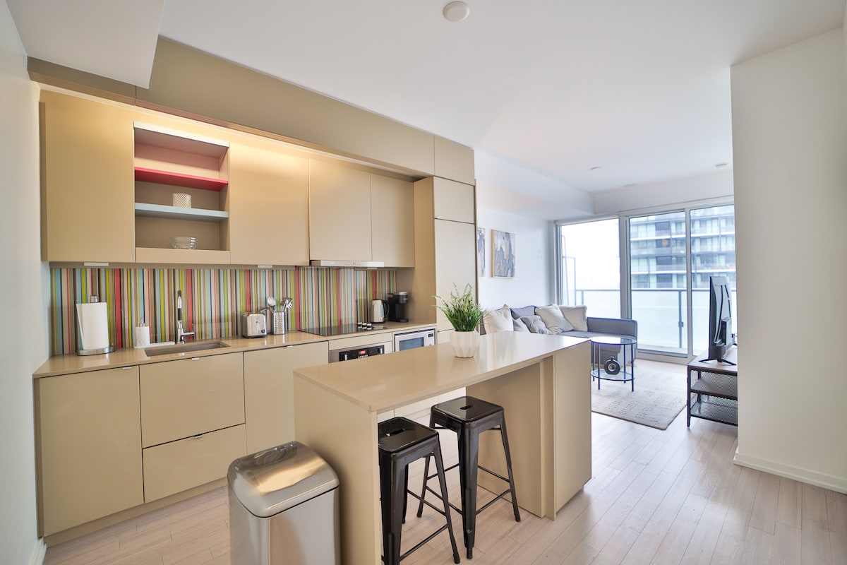 Erlebe Luxus im Herzen von Torontos Innenstadt. Diese gehobene Wohnung liegt nur wenige Schritte von den wichtigsten öffentlichen Verkehrsmitteln, gehobenen Restaurants, der Scotia Arena, dem Ripley's Aquarium, dem CN Tower, dem Lake Ontario und einem üppigen Park entfernt. Erkunde das pulsierende Unterhaltungsviertel und die belebten Märkte in der Nähe. Dieses Refugium verbindet Eleganz mit Komfort und bietet einen komfortablen und stilvollen Aufenthalt. Ideal für Geschäfts- und Urlaubsreisende, die das Beste von Torontos Innenstadt erleben möchten.