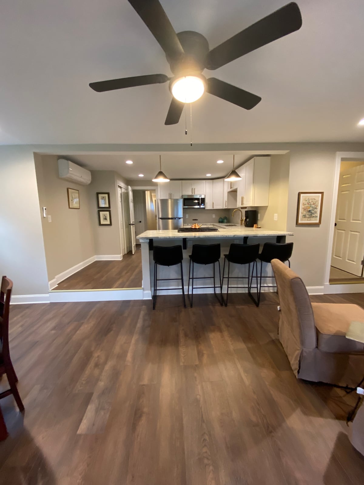 This is a complete 800 sq ft Barndominium that is part of a newly built barn. Although the original design was not for a living space, a returning adult child made the transformation into what it is today. We are delighted to share this area with visitors who want to enjoy the flexibility of seclusion on the 50 acre hobby farm and use this as a base camp to enjoy the surrounding sites. This is wine country for sure! Within 8 miles is the Glider Capital of the world as well as historic Corning.