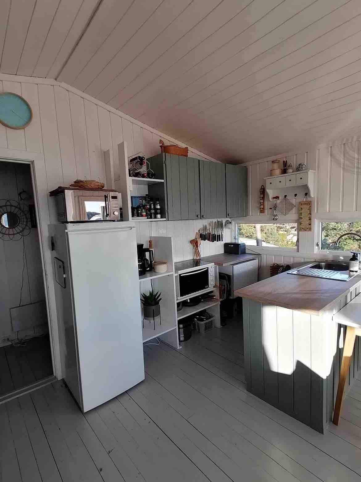 Idyllisches Sommerhaus mit Bootshaus, Steg, holzbeheizter Sauna am Meer, Strand und Boot. Fischessen vom Pierrand nach einem Bad und einer Sauna. Sonne vom Morgen bis Abend in der Hütte. Fahre ein Boot mit Kindern und Erwachsenen. Große Außenbereiche und Terrassengrill und Abendsonne. Das einfache Leben einer netzunabhängigen Hütte in ruhiger Umgebung. Holzkamin, fließendes Wasser über Dachwassertank, Solarzellenanlage und Batteriebank (12 +230V). Voll ausgestattete Küche, Gasherd, Kühlschrank. Hier findest du garantiert den Urlaub in idyllischer Umgebung.