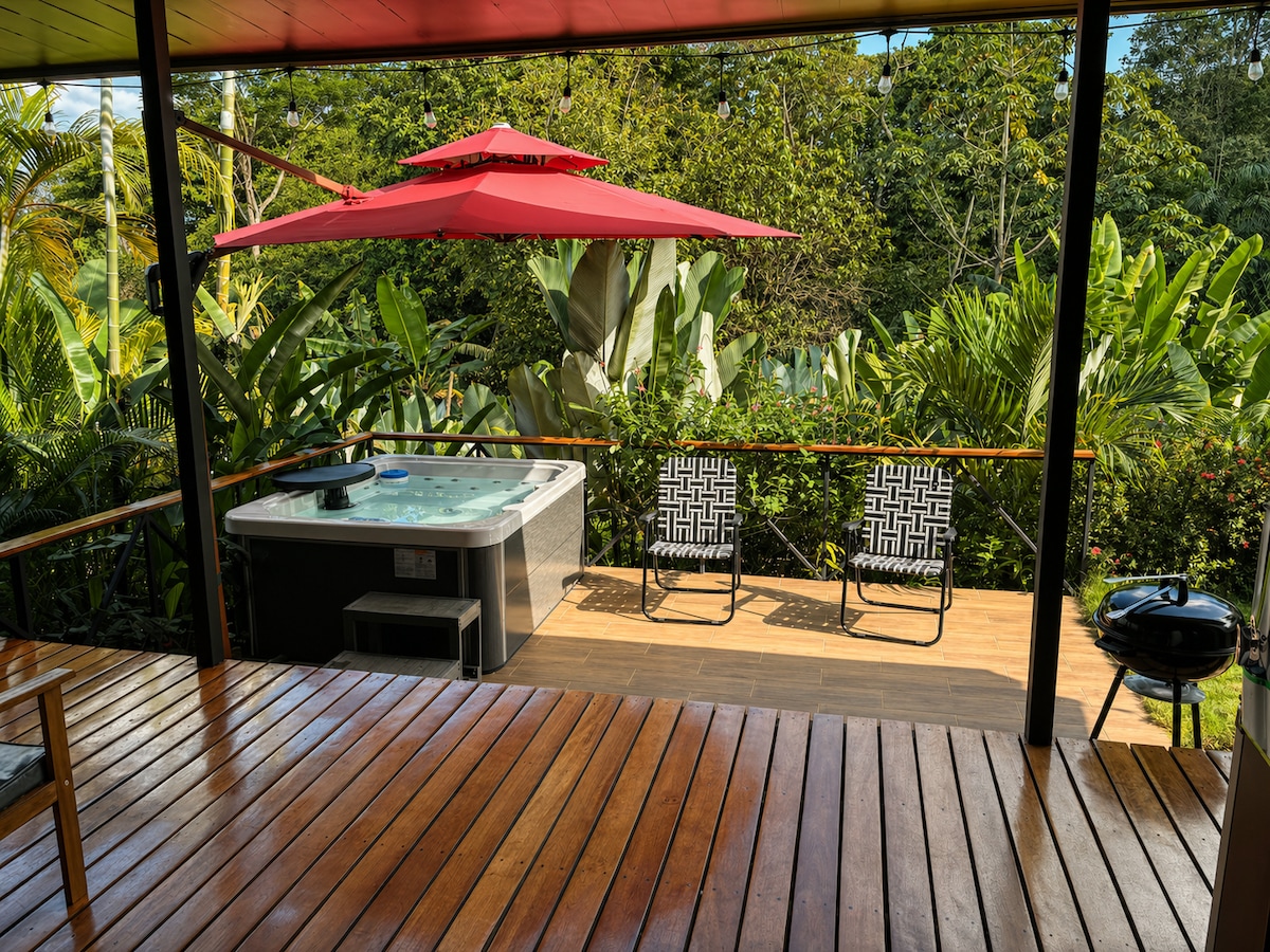 Eine Unterkunft, um der Routine zu entfliehen und sich mit der Natur zu verbinden. Sie hat ein modernes Design mit einer warmen Dekoration, umgeben von Natur, wo du viele Vögel beobachten kannst, einen schönen Blick auf den Vulkan, einen Balkon, eine Terrasse, einen erfrischenden Pool und einen privaten Whirlpool. Ein idealer Ort für Paare, Freunde oder um in Ruhe zu Hause zu arbeiten. Strategisch günstig in der Nähe aller Hauptaktivitäten gelegen und nur 2,5 km vom Zentrum von La Fortuna und 1 km vom La Fortuna Wasserfall entfernt.