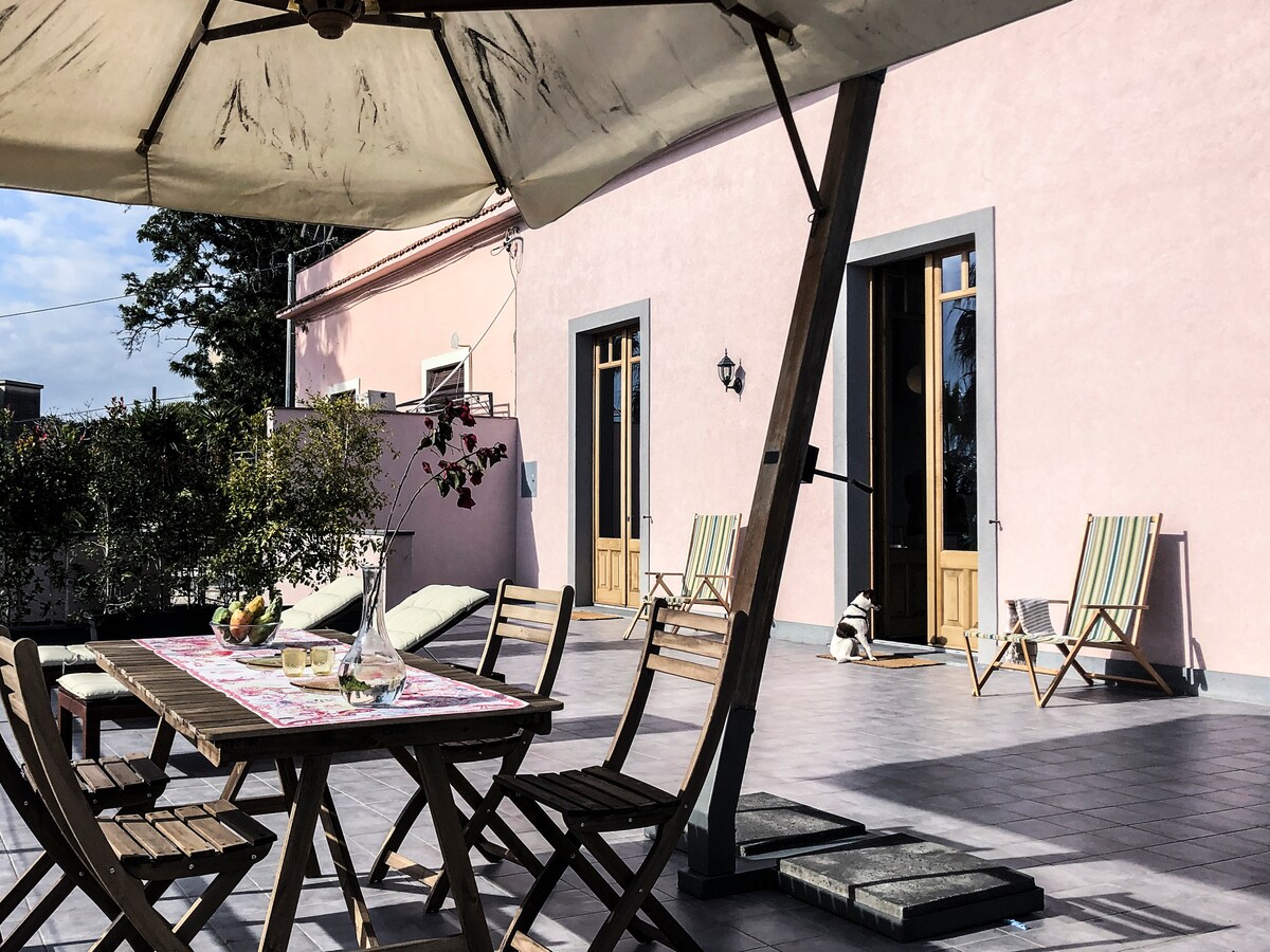 Modernes Bauernhaus am Ätna mit Weinberg und Terrasse