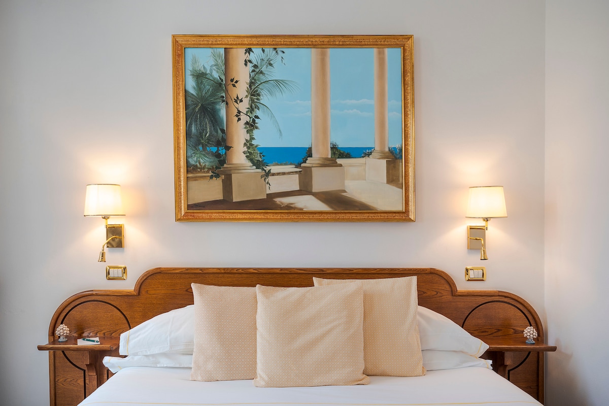 Historisches Boutique Hotel mit Charme, in einem weitläufigen, terrassierten botanischen Park. Zentrale und zugleich ruhige Lage mit Blick zur Bucht von Naxos bis zum Ätna; 32 Zimmer, davon 7 Junior Suiten und 1 Garden Villa Suite, mit Meer/Gartenblick. Klassische Atmosphäre, modernem Komfort, Panoramaaufzug, großzügige Gemeinschaftsbereiche zum Entspannen, À-la-carte-Frühstück, Aperitifs, Garage Valet-Service, Lademöglichkeit für Elektroautos, H24 Rezeption und Concierge-Service