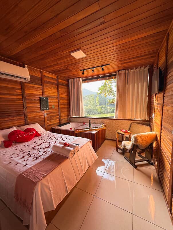 Das Chalet ist eine romantische Hütte, die an das @sitiorecantoazul in Alfredo Wagner/SC angeschlossen ist. Ideal für Paare, bietet aber Platz für + 2 Kinder auf dem Schlafsofa. Es gibt jedoch keine Aufteilung zwischen den Umgebungen. Es verfügt über eine Badewanne mit Hydromassage, einen Kamin, einen Fernseher mit Netflix und YouTube, WLAN, eine Klimaanlage, Bettwäsche, ein Bad, Bademäntel, eine Küche mit Herd, eine Mikrowelle, eine Minibar, einen elektrischen Grill und andere Utensilien. *Wir liefern eine köstliche Frühstücksbox, jeden Tag zwischen 8:00 und 9:00 Uhr, die im Chalet zugestellt wird!*