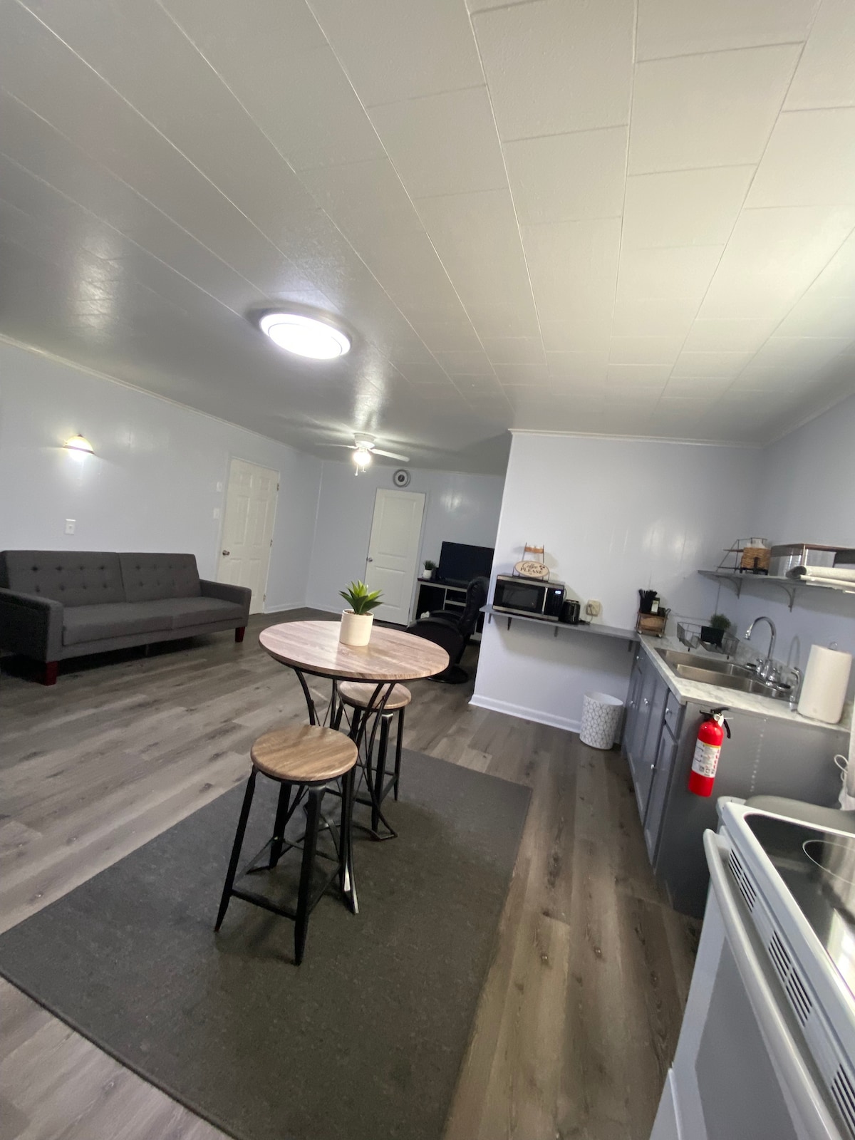 Willkommen in The Pilots Den! GASTGEBER ZAHLT SERVICE-GEBÜHREN Durchdacht gestaltet, damit alle Räume ihr volles Potenzial genutzt werden. Offene und moderne, gemeinsam genutzte Wohn- und Küchenbereiche bieten genügend Platz, um 2-4 Gäste zu unterhalten. Lux, Retro-Akzente & gemütliche Designs erwecken diesen wunderbaren Aufenthalt zum Leben. Diese Gästesuite ist komplett ausgestattet, die Küchenzeile verfügt über eine Kaffeekanne/Pfanne/einen Toaster und eine Eismaschine. Zu den zusätzlichen Annehmlichkeiten gehören: der Kühlschrank mit Gefrierfach, Waffelmaschine, Mixer, Bluetooth-Lautsprecher im Badezimmer.
