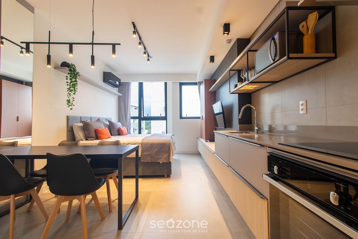Estúdio novo, completo e bem localizado.