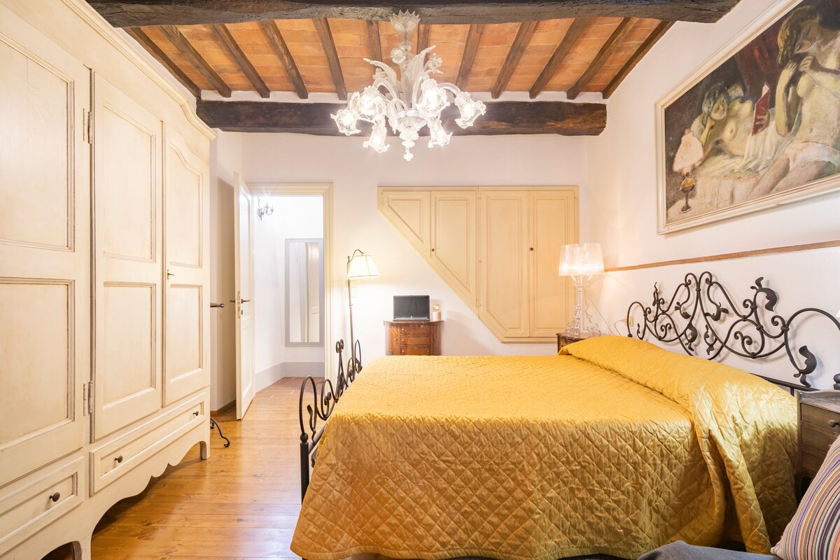 Apartment with beamed ceilings and terracotta floors, this apartment is set in a 19th-century farmhouse located in the hills of Siena in Rigomagno Toscana. From the solarium next to the swimming pool in the middle of the olive trees, you can admire the panorama of the Sienese hills and the medieval village of Rigomagno ... all this characterizes the ideal holiday for couples or families who want to relax. Solarium, garden, terrace, swimming pool are exclusively for guests of the apartment.