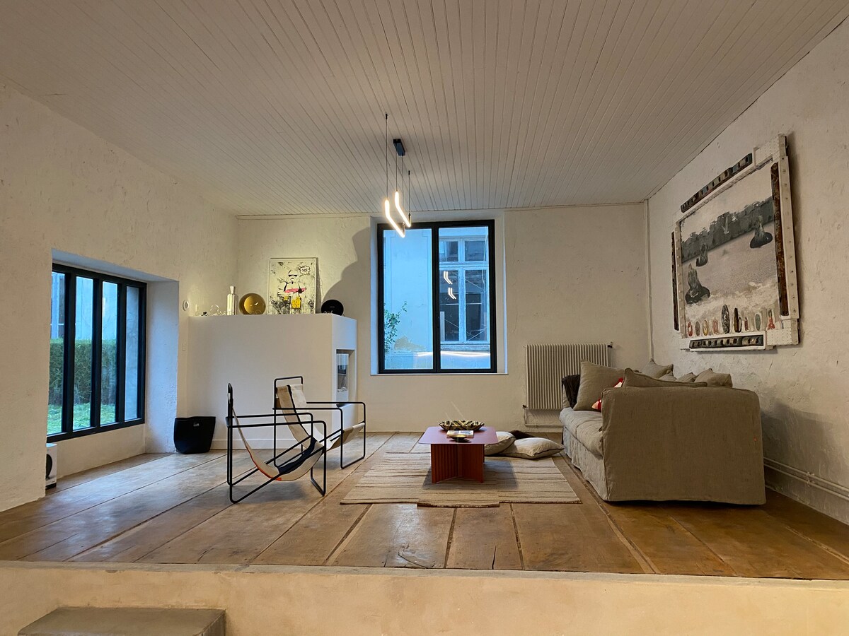 Du betrittst den Garten von der Straße aus durch eine kleine diskrete Tür. Du überquerst einen kleinen gepflasterten und blühenden Innenhof, bevor du entdeckst, wo das Haus versteckt ist. In einer sehr ruhigen Gegend befindet es sich auf der Rückseite eines großen ummauerten Gartens, einen Kilometer vom Bahnhof und den Geschäften und 400 Meter vom Wald entfernt. Perfekt für einen Aufenthalt mit Familie oder Freunden, ist das Haus auch für die Fernarbeit, da es eine Glasfaser-Internetverbindung hat.