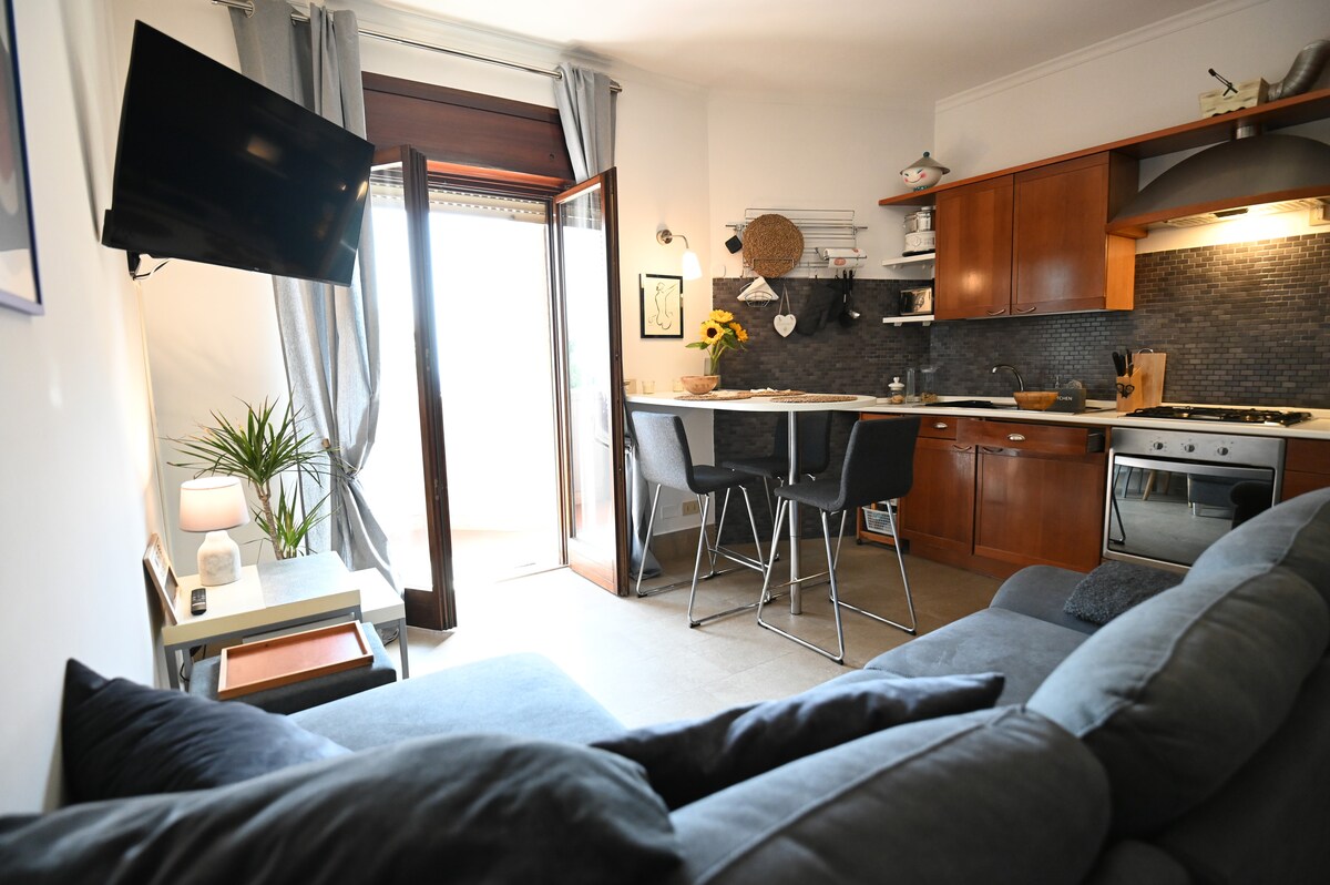 A refined studio apartment just renovated and furnished within an ancient building with an independent entrance. The apartment is located at few meters from the train station and the main street of Albano Laziale. Ideal for a holiday, you can visit the entire town by walking. Equipped with television, air conditioning, independent heating, washing machine, double bed, wardrobe, complete kitchen, space to eat and bathroom with large shower for two people.