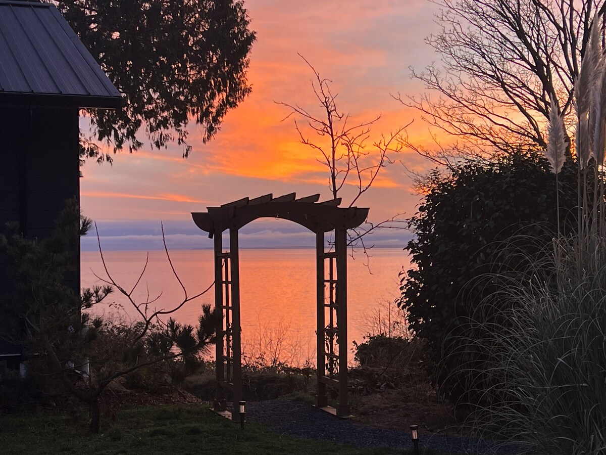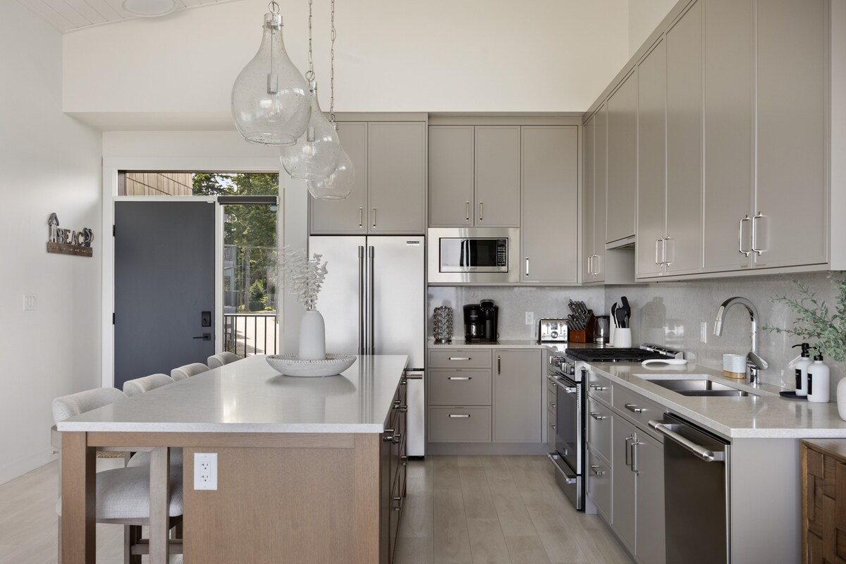 Komm und übernachte in diesem luxuriösen neuen Haus mit 2 Schlafzimmern und 2 Badezimmern. Diese Unterkunft verfügt über einen Panoramablick auf das Meer, einen Whirlpool, eine große Terrasse, ein EV-Ladegerät der Stufe 2 und alle Annehmlichkeiten, die du benötigst, um deinen Aufenthalt zu genießen. Entspanne dich im geräumigen Wohnzimmer oder genieße das Abendessen in der Gourmet-Küche in diesem erstaunlichen Privathaus. Klimaanlage, beheizter Badezimmerboden, große Doppelkopf-Dusche, Badewanne und individuelle Esstheke mit Meerblick sorgen für Komfort, während du Wale beim Schwimmen im Salish Sea beobachtest.