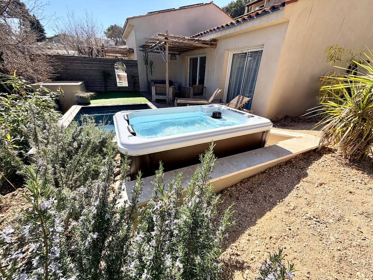 The building, an authentic Provencal farmhouse, was built on a huge 1.6-hectare estate among olive trees and orchards. Your independent cottage is located in a private West wing. The East wing is occupied by the owners as the farmhouse is conceived to assure each its confort and intimacy. You have a separate entrance with gate and a car park up to 4, private garden with a spa and your own heated pool. You have also access on the property to many amenities to enjoy your stay
