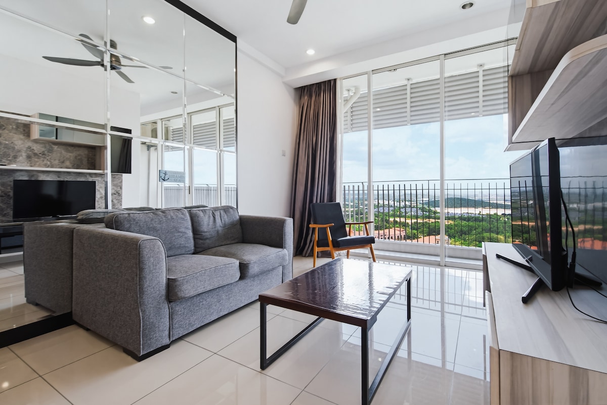 Setia Sky88, die Luxus-Eigentumswohnung mit einem ikonischen Design im Herzen von Johor Bahru. Privat und sicher garantiert. Spüre die Liebkosung einer leichten Brise im Gesicht, während du dich am hochgelegenen Swimmingpool von Setia Sky88 entspannst. Genieße die Euphorie des luxuriösen Wohnens, indem du jetzt bei uns übernachtest! ✔ 3 Minuten zum Komtar JBCC & City Square ✔ 3 Minuten zur Einwanderungs-CIQ (Verbindung nach Singapur) ✔ 5 Minuten zum Einkaufszentrum KSL MALL ✔ 10 Minuten bis zum Mid Valley. Genieße ein stilvolles Erlebnis in dieser zentral gelegenen Unterkunft.