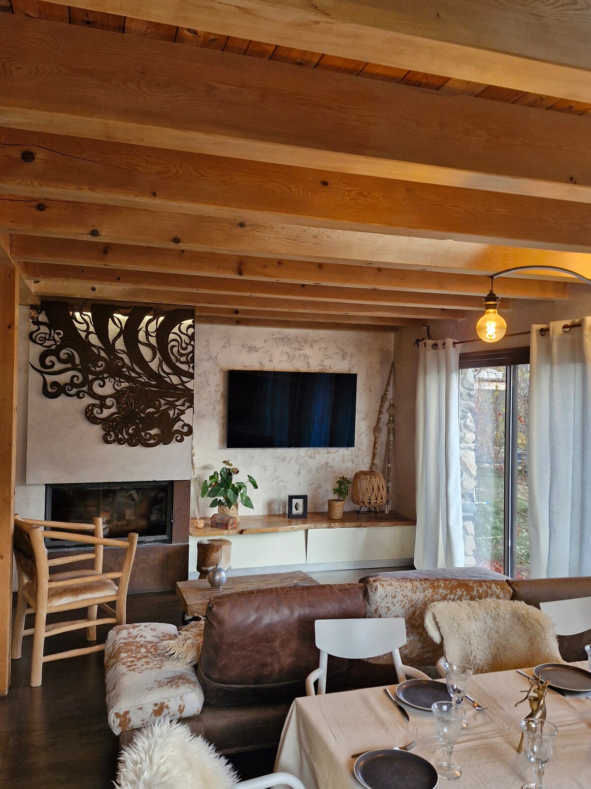 Passez des vacances sereines dans ce chalet contemporain. Offrez à votre famille un cadre de vie exceptionnel. Ce chalet spacieux et lumineux dispose de tout le confort nécessaire : bureau pour télétravailler, espace de jeux pour les enfants, rangements pratiques.... Le tout dans un environnement calme, à proximité du centre ville. Vous vous y sentirez comme dans votre résidence principale avec tous les équipements modernes . Pendant la semaine du nouvel an réservation du 28 déc au 02 janvier