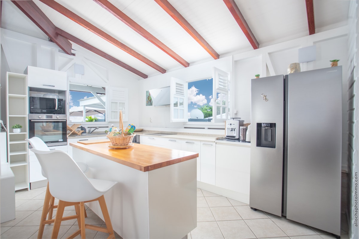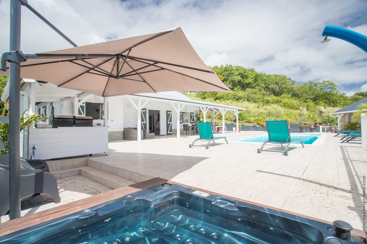 VILLA ROSA BLANCA MARTINIQUE Outstanding Luxury Villa - Private Lap Pool - Large Garden - In Garden Playground & Beach Tennis/Volley - Water Sports & Kitesurf Spot - 4 Large Bedrooms (in suite bathrooms) with AC for 8 + 1 Guests - Large Shaded Terrace - Outdoor Lounge - Barbecue/Firepit - Concierge Services. Your Luxury Gateway in Paradise Martinique.