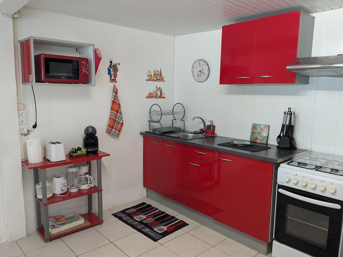 Grand studio de 37 m2 rénové à neuf situé à 10mn de l'aéroport AIME CESAIR, 5 min de l’hôpital Mangot Vulcin et du centre commercial Place d’arme. Il est composé d’un séjour-chambre climatisée avec un canapé convertible pour 2 .Une cuisine équipée neuve, une salle de bain avec dressing, un WC indépendant. Dans le calme en pleine nature. A mi chemin entre les montagnes du Nord de l'ile et les magnifiques plages du Sud. A l’étage d'une villa- petite terrasse intime ... Logement géré par SCI NCB.