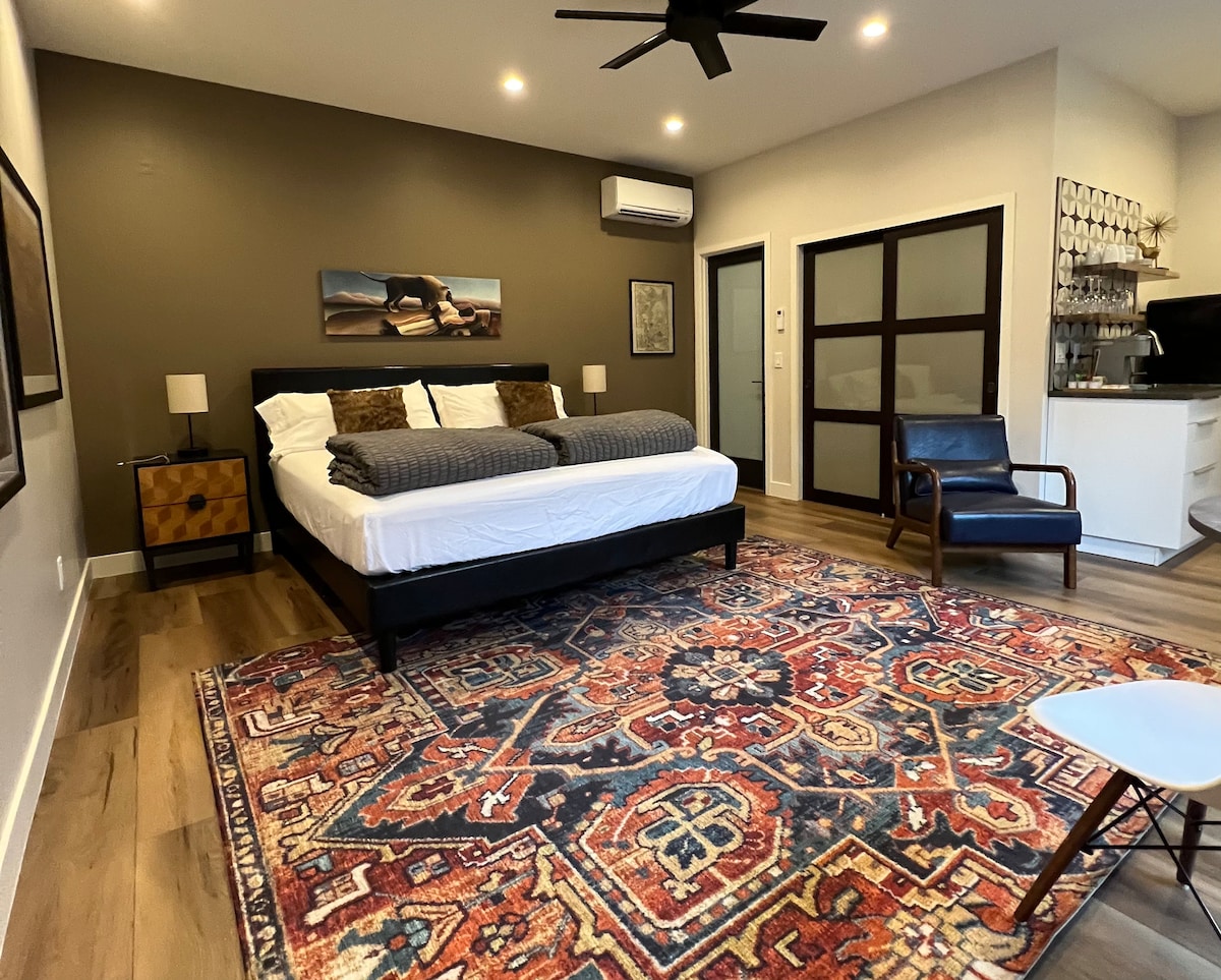 Private Suite, separater Eingang – zwei große, stilvolle, miteinander verbundene Zimmer, großes, schönes Badezimmer mit Doppeldusche. Teil eines größeren Hauses, aber privater Raum; getrennt durch eine abschließbare Tür. * Ruhezeit nach 23:00 Uhr. * Rauchen/Dampfen ist in der Unterkunft VERBOTEN. * Kein Essen in der Suite zurücklassen – werfe es in den Müll draußen. * Netflix/Amazon. * Kühlschrank, Espressomaschine, Wasserkocher, Mikrowelle. * Kein Spülbecken oder andere Geräte. * Innenstadt: 1/2 Meile, * Snowbowl: 13 Meilen, * NAU: 1 Meile.