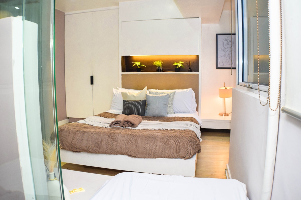 Alegria del Cielo bietet modernen philippinischen Komfort in einer stilvollen 2BR-Wohnung im Herzen von BGC. Genieße einen atemberaubenden Blick auf die Skyline, eine gemütliche Liege am Fenster und einen zu Fuß erreichbaren Zugang zu den besten Geschäften, Restaurants und dem Nachtleben - direkt vor deiner Tür.