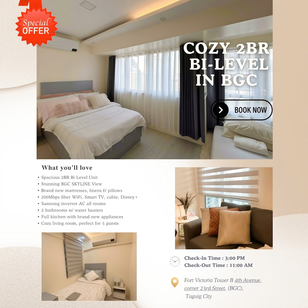 Cozy 2BR Bi-Level in BGC | City View +WiFi+Karaoke