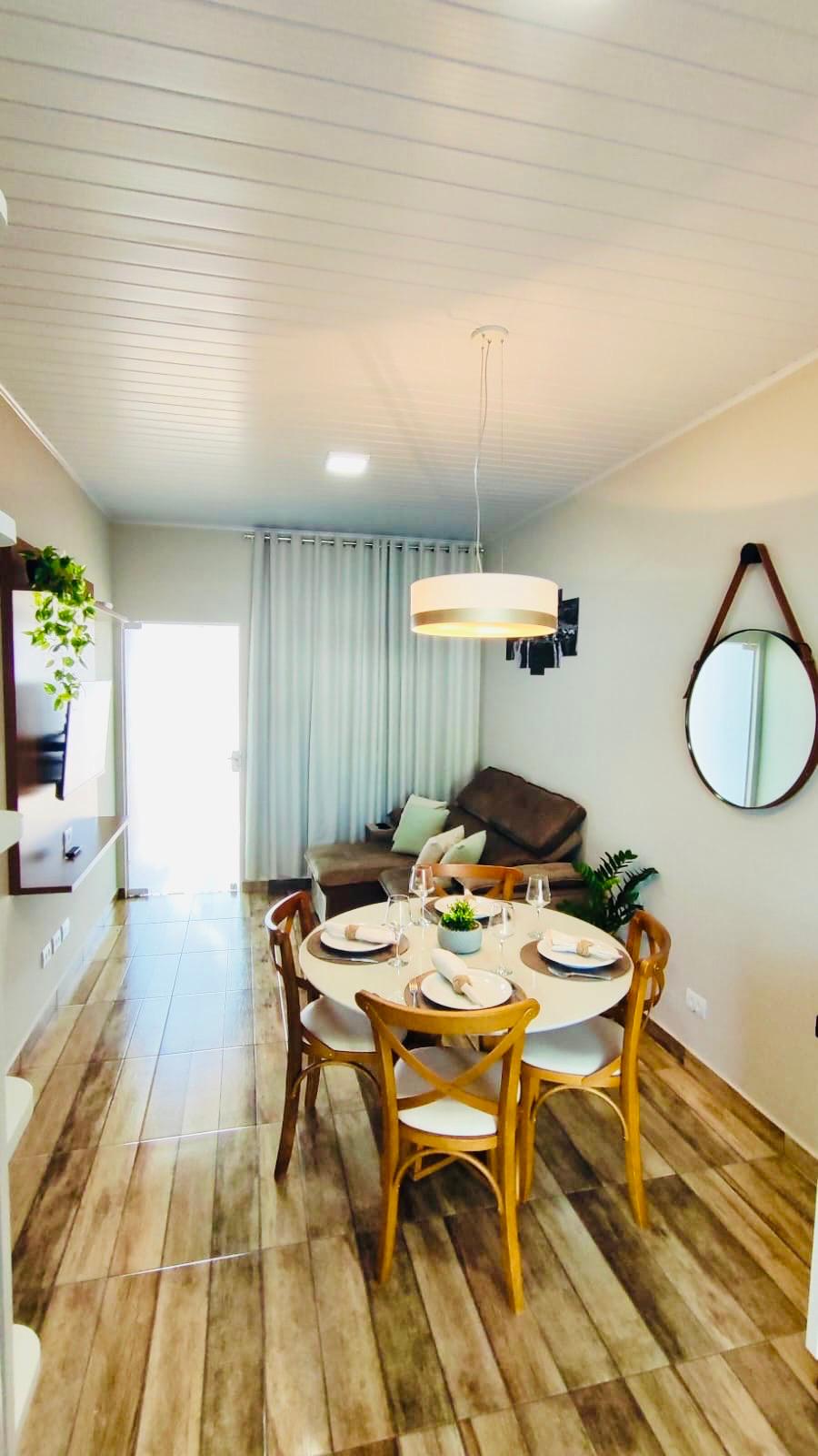 Na parte superior da casa encontrasse os quartos, sendo uma suite + 2 quartos e banheiro. Todos os cômodos com ar condicionado e sacada. Na parte de baixo fica a garagem que abriga 2 carros + sala de tv com internet e lavabo. Cozinha com utensilios domésticos, geladeira, microondas, fogão, forno elétrico. Área gourmet com ar condicionado + churrasqueiras com espetos + utensilios. Parte externa com SPA Jacuzzi, banheiro completo.