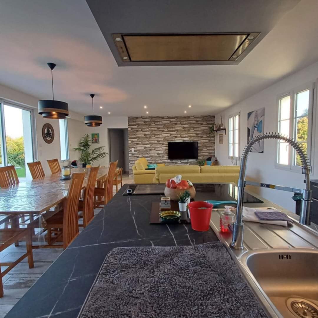 ENVIE D'EVASION ❤️ DE DÉCOUVERTE, D'AVENTURE... j'ai quelque chose pour vous .... Suivez moi ..... 👉Venez découvrir cette magnifique île sur la côte Atlantique, qui saura vous séduire par ces nombreuses balades et criques à découvrir. 👉Maison 150 m2 au calme d'une impasse -5 ch lits doubles -2 salles de bains+un coin lavabo -Piscine extérieure chauffée mai à oct.selon la météo -ter de boules 👉ll pleut? pas de panique palet et fléchette a l'abri vous y attend et de nombreux jeux.