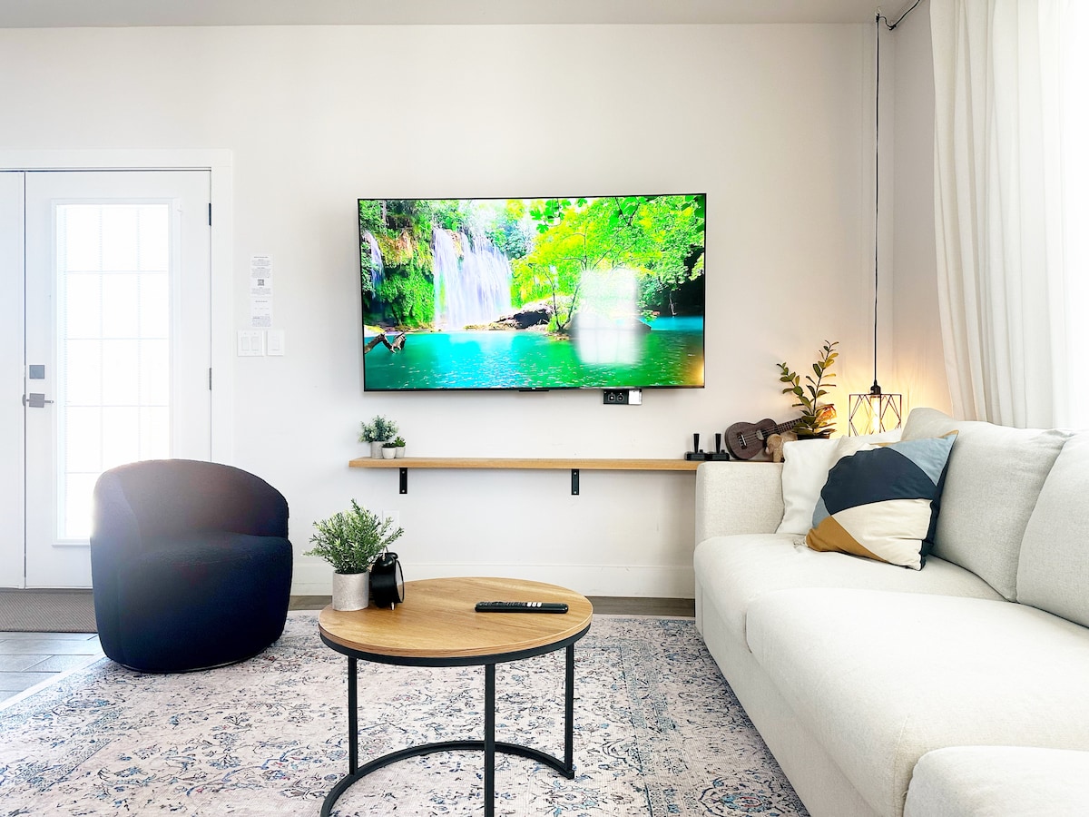 - SCHNELLE FAHRT zum Main - GROSSE PRIVATE TERRASSE mit FEUERSTELLE & SPIELEN - 2 KOSTENLOSE Parkplätze DIREKT VOR DER TÜR - 55-Zoll-4K-SMART-TV & KING-MATRATZE: Sealy High Point Hybrid - 70-Zoll-4K-Smart-TV, TERRASSEN- und VERANDABLICK in GEMÜTLICHEM Wohnen für 4, mit ausziehbarer QUEEN-Size-Matratze - Logge dich bei DEINEN STREAMING-Diensten ein - ATARI-Konsolenspiele - Bettwäsche und Handtücher aus BAUMWOLLE - AUSGESTATTETE Küche - Bistro-ESSBEREICH & SCHREIBTISCH - ein GERÄUMIGES BAD mit NEUER Dusche - KOSTENLOSER ZUGANG ZUR WASCHKÜCHE - EINSTÖCKIGE Wohnung im Cottage-Stil - MINIMALE Ästhetik - ÖKO-Auswahl mit ♡