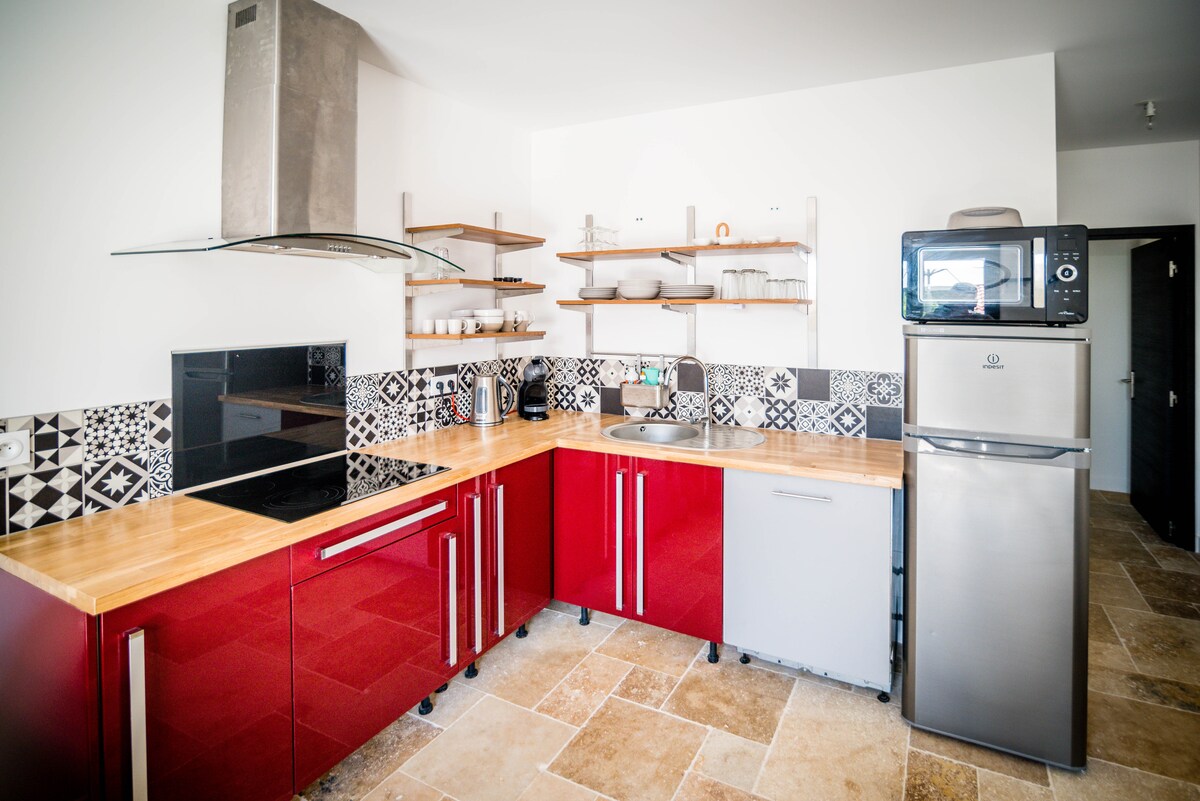Im Garten meines Hauses gelegen, gelangst du durch den Garten zu diesem hübschen Haus, 19 m2, in einer grünen Umgebung, mit einer privaten möblierten Terrasse, sonnig und in völliger Privatsphäre. Es ist nur ein Zimmer, es ist klein, gemütlich, komfortabel und funktional alles da! Murphy-Bett, Bad mit ebenerdiger Dusche und WC. Umschaltbare Klimaanlage. Rolläden an allen Fenstern. Im Kühlschrank und in den Schränken findest du Frühstück und Grundprodukte