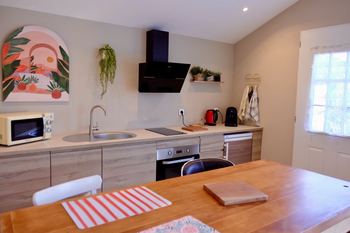 Spacieux et lumineux loft de 40m2 occupant l’ensemble du rez de chaussé d’une maison indépendante sur un terrain de 1200m2 arboré et clos. Rénovation récente, décoration vintage avec tout l’équipement nécessaire. L’appartement se trouve à mi chemin entre le bourg de Soorts et le centre de Hossegor et son lac, accessibles à vélo par la piste cyclable accolée à la rue passant en bas de la propriété.
