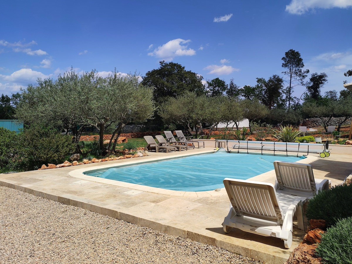 Ravissant tipi au calme jardin arboré et piscine