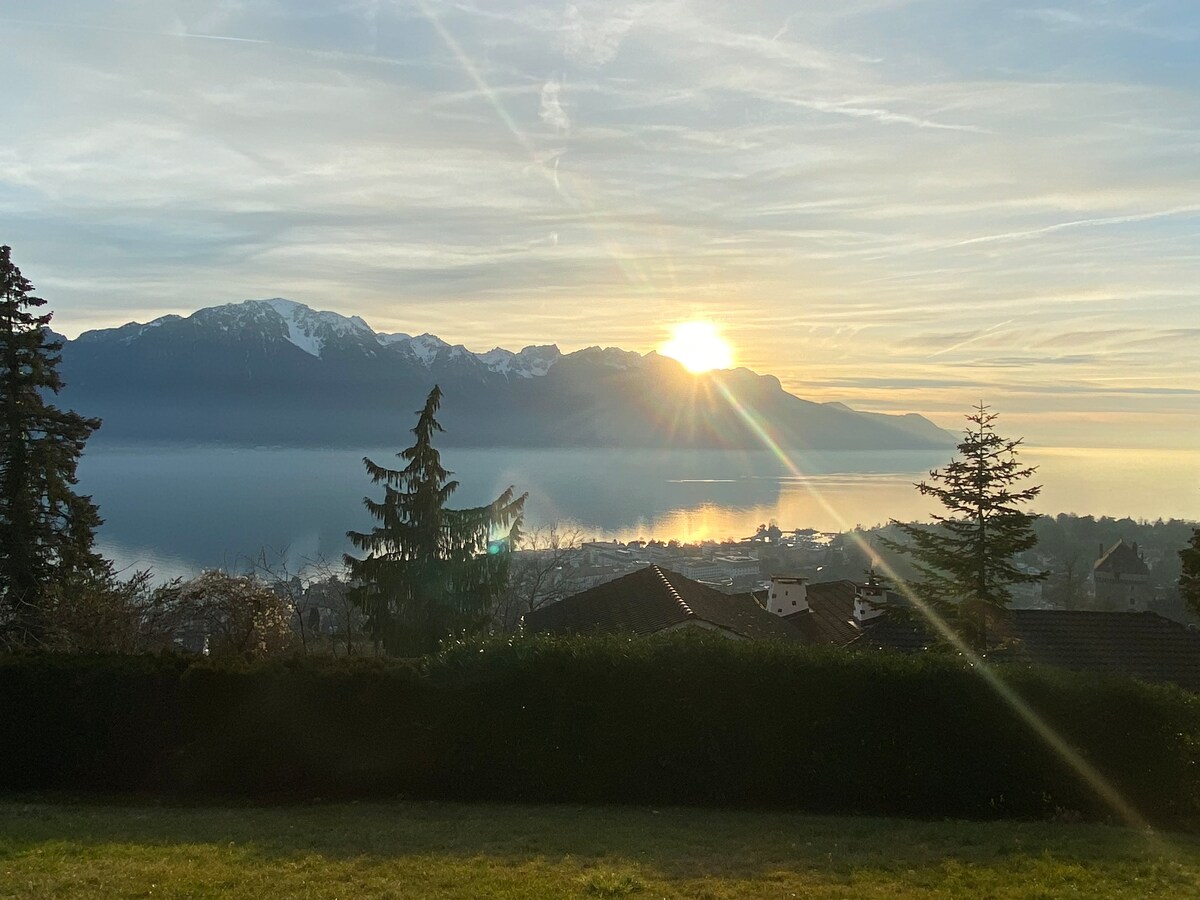 Nous vous accueillons dans le studio de charme à l’atmosphère zen et cosy, aménagé dans les combles de notre jolie maison. Vous y jouirez d'un vue grandiose sur le vieux village viticole d’Auvernier, le lac et les Alpes. A pied par les chemins de vigne, vous serez au bord du lac en 10 minutes, en train à Neuchâtel en 6 minutes. Les balades pittoresques, randonnées, musées et restaurants vous y attendent. Train, bus et tram sont à proximité immédiate. Possibilité de paresser dans le jardin!