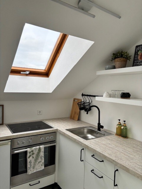 Genießen Sie Ihre Zeit in unserer stil- und liebevoll eingerichteten Ferienwohnung. Unsere Wohnung verfügt über einen offenen Wohn-/Essbereich mit Kochnische, einen abgetrennten Schlafraum und ein Badezimmer mit Dusche. Die Kochnische ist ausgestattet mit Geschirrspüler, Herd, Kühlschrank (+Eisfach) sowie einer Kaffeemaschine. Im Schlafzimmer finden Sie ein bequemes Doppelbett 140cm und einen Kleiderschrank vor. Ein weiterer Schlafplatz steht Ihnen auf der Schlafcouch zur Verfügung.